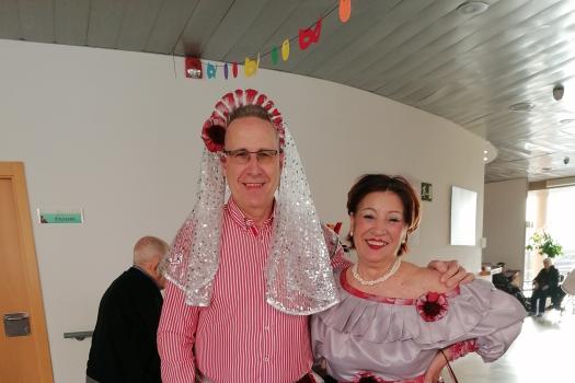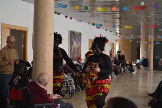 La visita a la residencia es una de las nuevas actividades incluidas en la programación del Canaval de Almagro. Teresa Barrajón ha sido la impulsora de la propuesta como la que tuvo lugar en el centro de mayores. En ambos casos, la finalidad ha sido acercar la fiesta a su hogar actual o el lugar donde pasan gran parte del día, ya que muchos de ellos no pueden desplazarse a la fiesta del Carnaval en la calle.