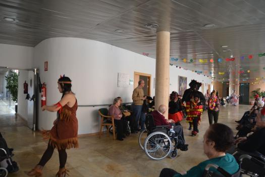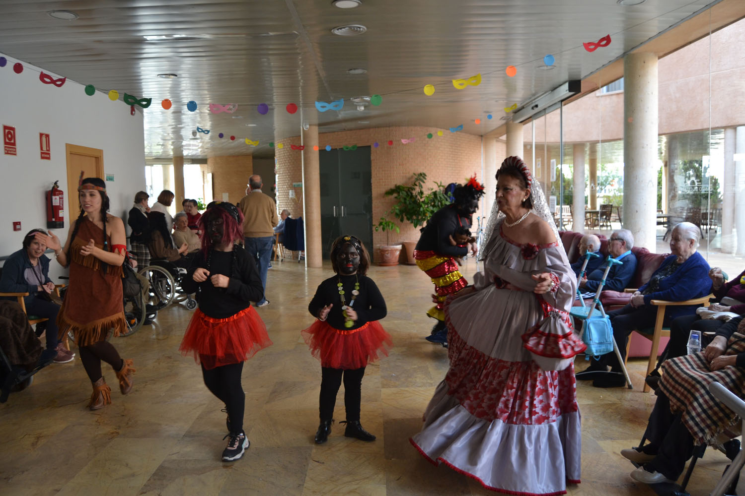 Un grupo de máscaras visita la residencia Campo de Calatrava