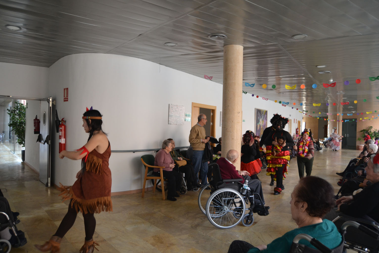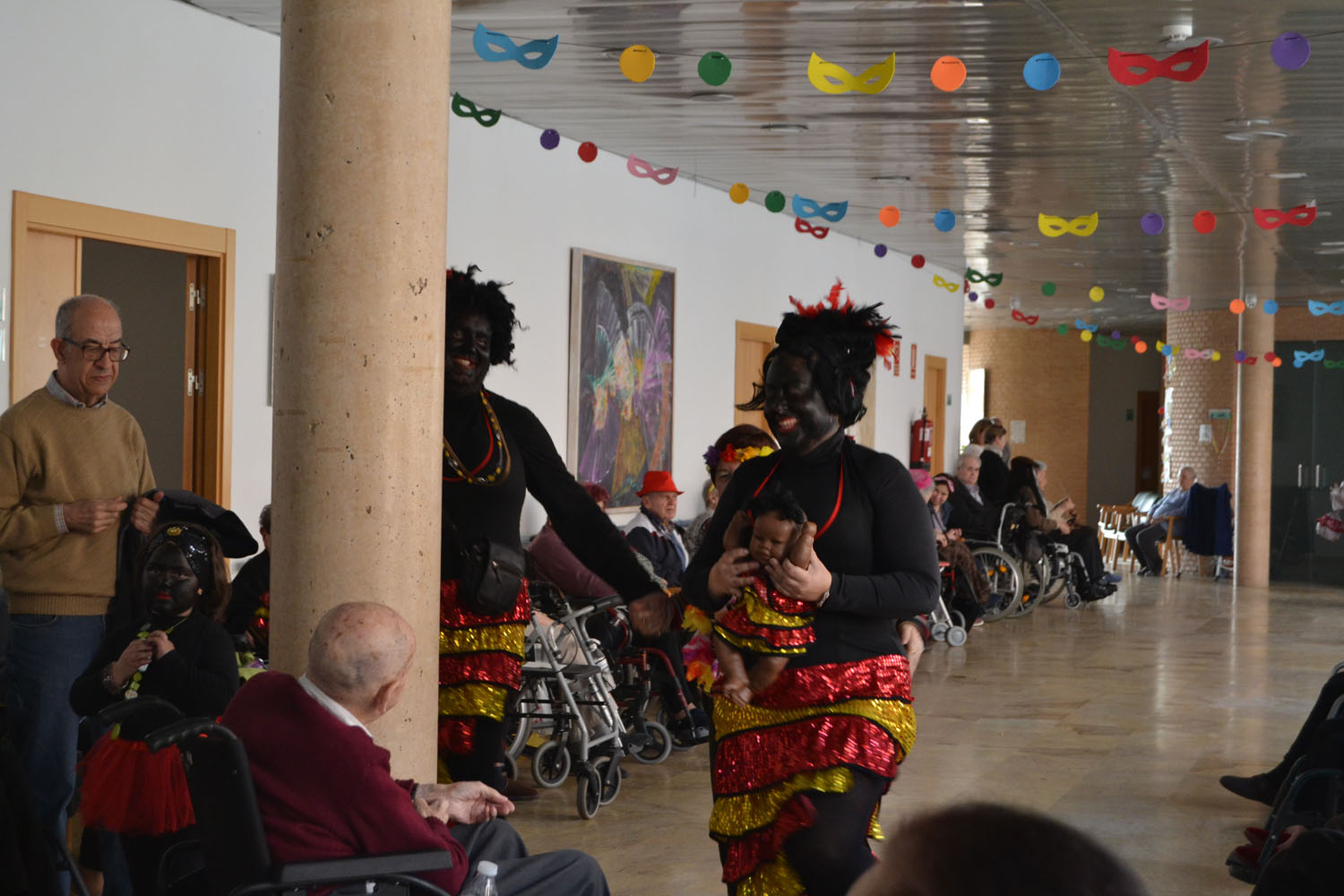 El Carnaval sigue en Almagro. Esta tarde, un grupo de máscaras, encabezado por la concejal de Festejos, Teresa Barrajón, han visitado a los mayores de la residencia Campo de Calatrava de Almagro. A ritmo de música carnavalera, mayores, familiares y máscaras han bailado y cantado en el gran hall de la residencia.