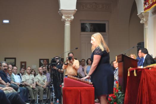 La Diputación Provincial de Ciudad Real se ha constituido esta mañana. Pasadas pocos minutos de las 10:30 horas, ha comenzado el acto institucional en el que José Manuel Caballero Serrano ha sido reelegido presidente de la institución ciudadrealeña con los votos de los 15 integrantes del Partido Socialista que desde este mañana, también son diputados provinciales para los próximos cuatro años. Entre ellos, la concejal de Bienestar Social, Mujer, Infancia, Juventud y Empleo, María Jesús Villaverde que ha prometido su cargo. Viillaverde, a sus 34 años, afronta con mucha ilusión esta nueva etapa política en su vida. Trabajadora social de formación académica y también de profesión, Villaverde forma parte del Partido Socialista desde su juventud. Se estrenó como concejal en la anterior Legislatura con Daniel Reina como alcalde. Estos próximos cuatro años compaginarán sus labores municipales con las de diputada provincial, en representación de la comarca de Almagro.