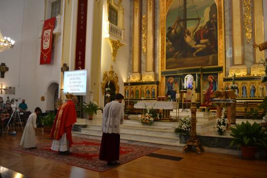 El párroco Ángel Daniel de Toro, que también ha presidido la misa sin otros sacerdotes, ha tenido palabras de recuerdo y aliento para todas las familias de Almagro que han perdido a alguno de sus familiares y para todas aquellas personas que lo están pasando mal a causa de la COVID-19. Muchos recuperándose de la enfermedad y otros desempleados como consecuencia de la crisis sanitaria.