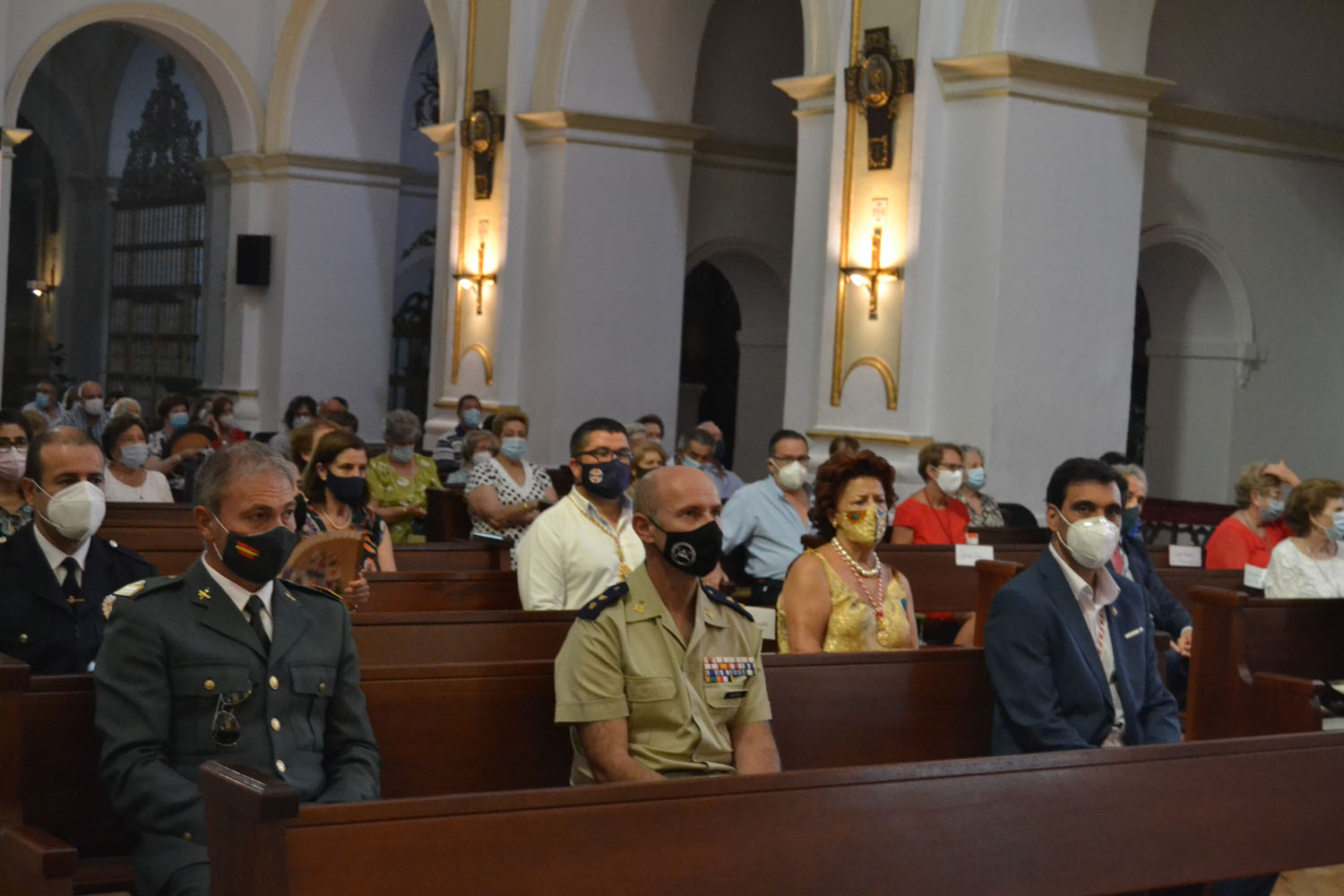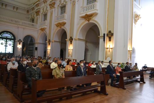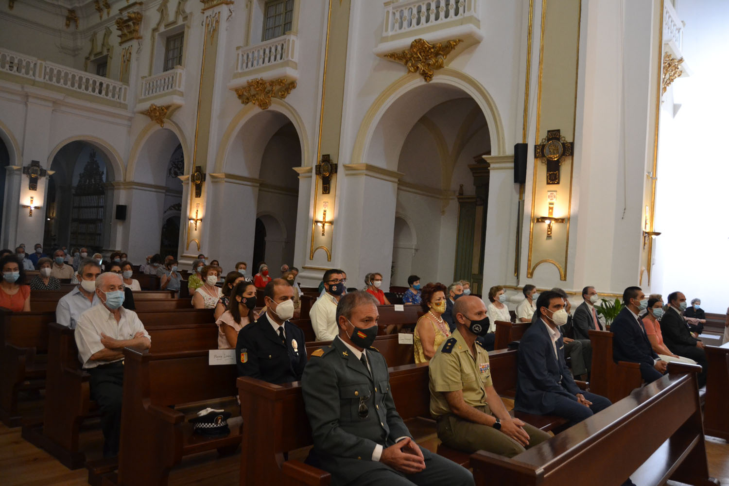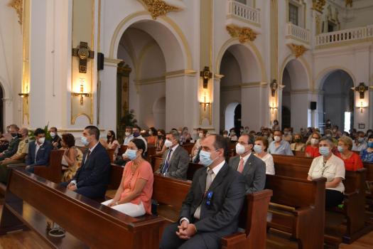 Incluso la representación institucional ha sido menor. Han asistido siete de los 13 concejales que conforman la Corporación Municipal, junto a los representantes de la Policía Municipal, Guardia Civil y de la Base de Helicópteros de Almagro y miembros de las hermandades y asociaciones de laicos de la ciudad que han asistido tras confirmar su invitación y ubicados con su nombre en los bancos asignados previamente.
