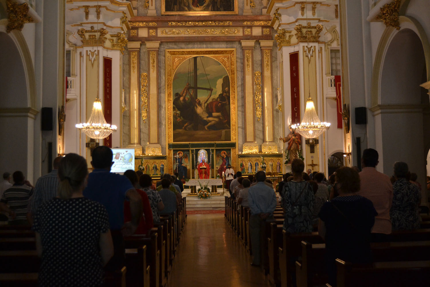 Una misa que se ha celebrado como es tradición en la iglesia que lleva su nombre y donde se encuentra la imagen del santo. Pero, como este verano, la celebración eucarística también ha sido atípica. Pocos fieles en los bancos para cumplir con las normas de seguridad, no ha habido plegaria del alcalde al Patrón, en nombre de todos sus vecinos y tampoco la ofrenda floral de los mayores, de la Reina y damas y zagales, ni la ofrenda en forma de baile tradicional de la asociación Tierra Roja al finalizar la misa.
