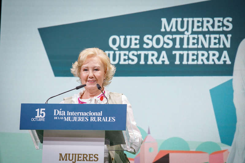 Al escenario también han subido la consejera de Igualdad, Sara Simón que ha hablado del papel de la mujer en la sociedad, en los cambios que se han ido produciendo en las últimas décadas y lo que queda por hacer. En este contexto, ha explicado que el número de mujeres que solicitan las ayudas de la PAC en agricultura y ganadería ha crecido hasta las 31.000, lo que representa un 34,05 por ciento del total. La consejera ha enumerado otra serie de datos, que “plasman una tendencia realmente positiva” sobre las mujeres en el mundo rural, fruto del “esfuerzo” de miles de ellas y de las políticas regionales, aludiendo a instrumentos como la Ley contra la Despoblación, el Estatuto de las Mujeres Rurales, planes de formación y capacitación digital o “poderosos” incentivos económicos.