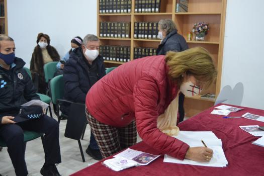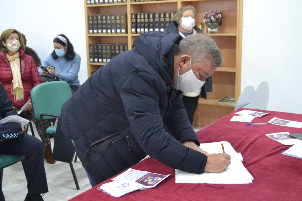 Con un minuto de silencio y la firma de adhesión al manifiesto por parte de los asistentes, miembros de la Corporación Municipal, representantes de los Cuerpos de Seguridad del Estado y de asociaciones de mujeres de la ciudad, ha finalizado el acto oficial contra la violencia de género de este 25 de noviembre de 2021.