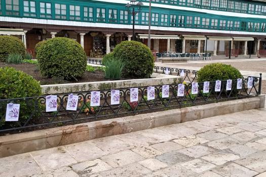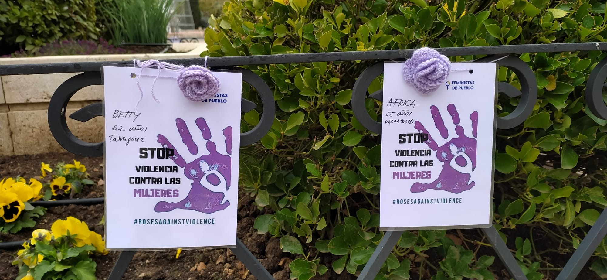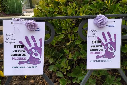 La asociación Feministas de Pueblo se ha sumado también a la reivindicación de visibilizar esta lacra social y seguir luchando por su eliminación de la sociedad. Ha colocado en la zona verde situada frente al Ayuntamiento una mano morada por cada mujer asesinada en España durante este 2021. La asociación se ha hecho echo de la campaña internacional #rosesagainstwomenviolence (rosas contra la violencia hacia las mujeres). Con este lema se pretende acercar a toda la sociedad la magnitud del problema y sensibilizar a la población, no sólo de la violencia física que sufren muchas mujeres sino también de la psicológica, económica y sexual que pueden pasar desapercibidas y muchas veces están más normalizadas. Las octavillas, además de incorporar el hashtag de la campaña, tienen una rosa morada de ganchillo hecha por mujeres de otras localidades de Castilla- La Mancha participantes del proyecto.