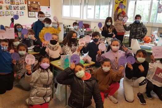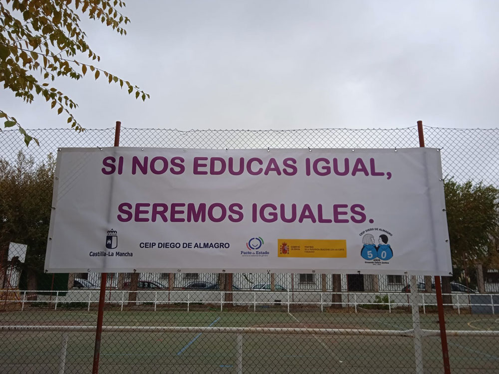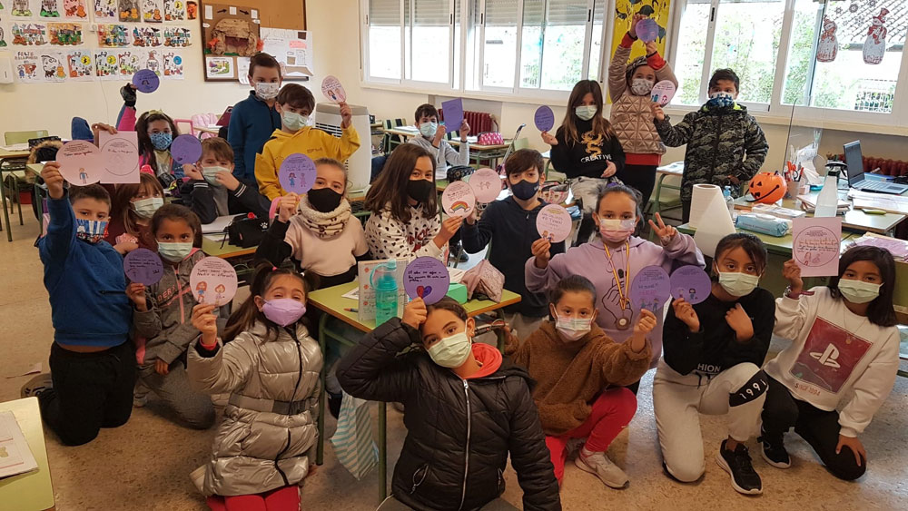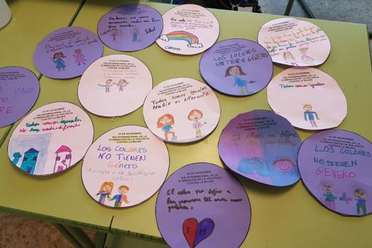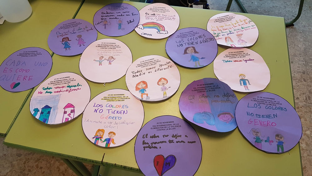 El colegio Diego de Almagro también ha querido sumarse al Día contra la violencia de género. A lo largo de toda la mañana ttvieron un taller para trabajar un cuento. Después hicieron un círculo con un mensaje que pegaron en el rincón violeta.