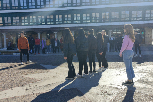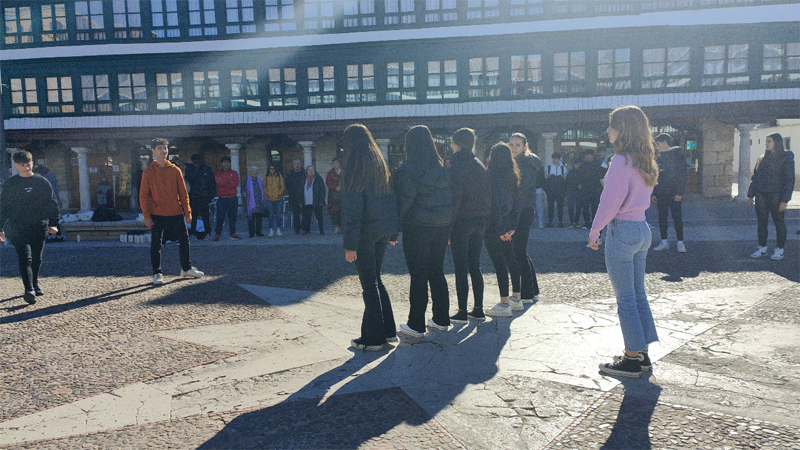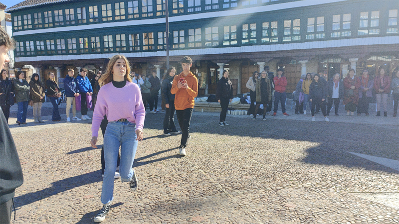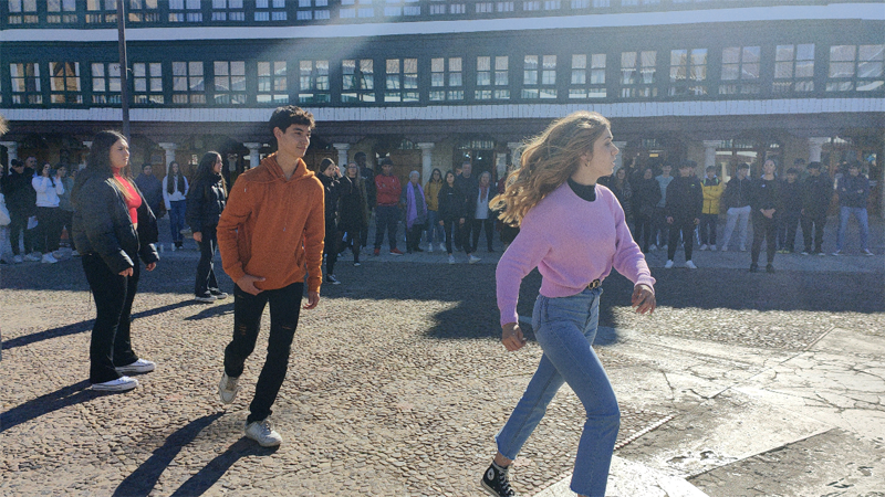 Los actos del Día Internacional de Eliminación de la violencia contra las mujeres han terminado con una perfomance en la Plaza Mayor de alumnos 4º ESO de la asignatura de Artes Escénicas que han mostrado cómo se manifiesta la violencia entre los jóvenes y qué papel desempeña los amigos para poder poner fin a esta lacra. También alumnos del IES Antonio Calvin ha participado, acompañando con música la actividad en la que se ha recordado a todas mujeres que han perdido la vida durante este 2022 con una vela por cada una. Entre el público, representantes de asociaciones de mujeres, alumnos de 3º ESO del Calvín, representantes de la comunidad educativa y parte de la Corporación Municipal.