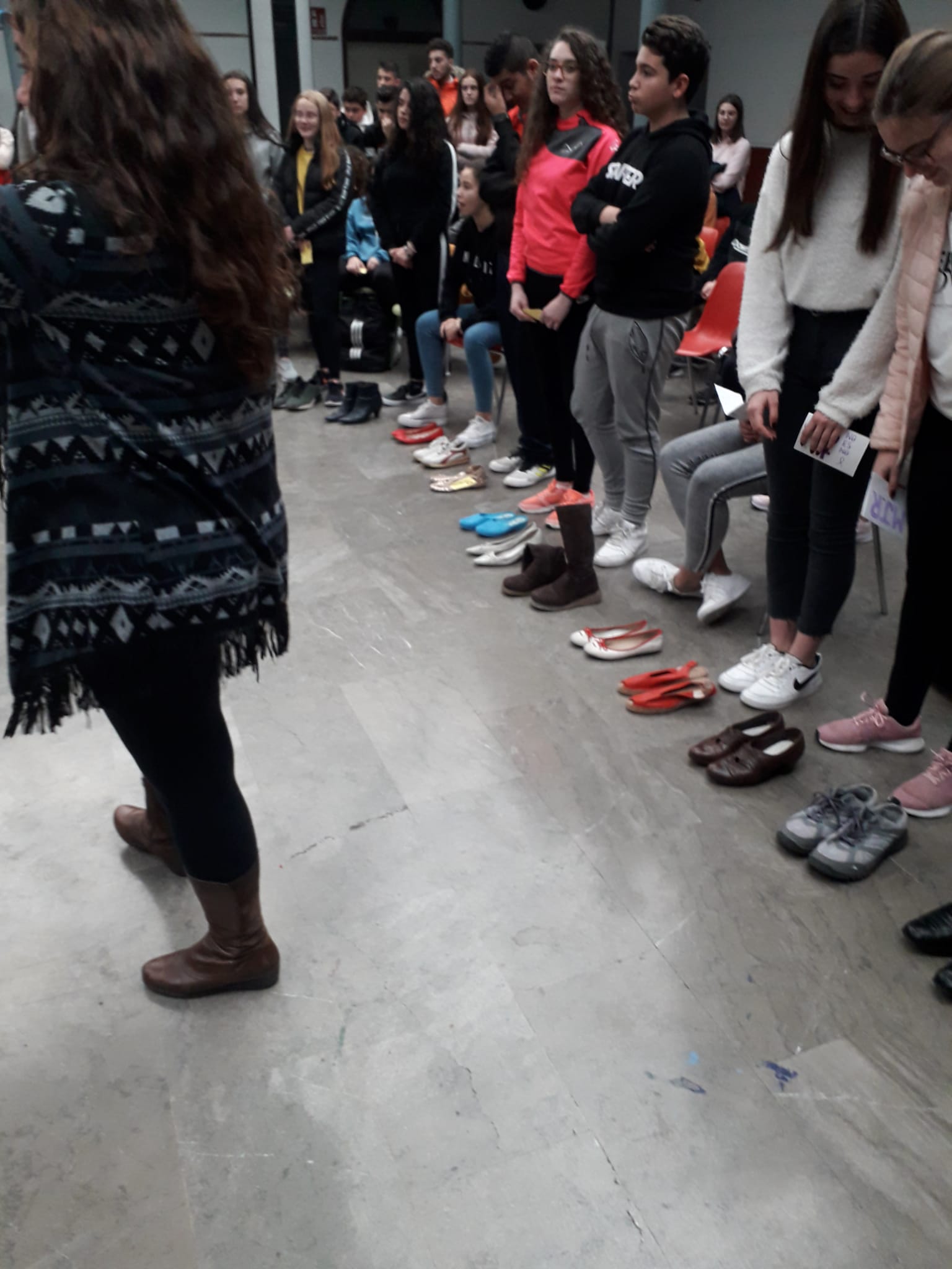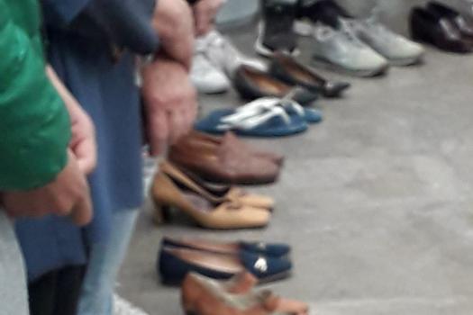 Tras la lectura y firma del manifiesto, los asistentes se han sumado a la actividad con los alumnos de 3º de Educación Secundaria de los centros almagreños y las mujeres de las asociaciones de mujeres del municipio. Han colocado 51 pares de zapatos por las 51 mujeres asesinadas y tres pares de zapatos de niños por los tres menores que también murieron a manos de los maltratadores. Los chavales han elaborado carteles con las iniciales de las víctimas a falta de un mes de finalizar 2019.