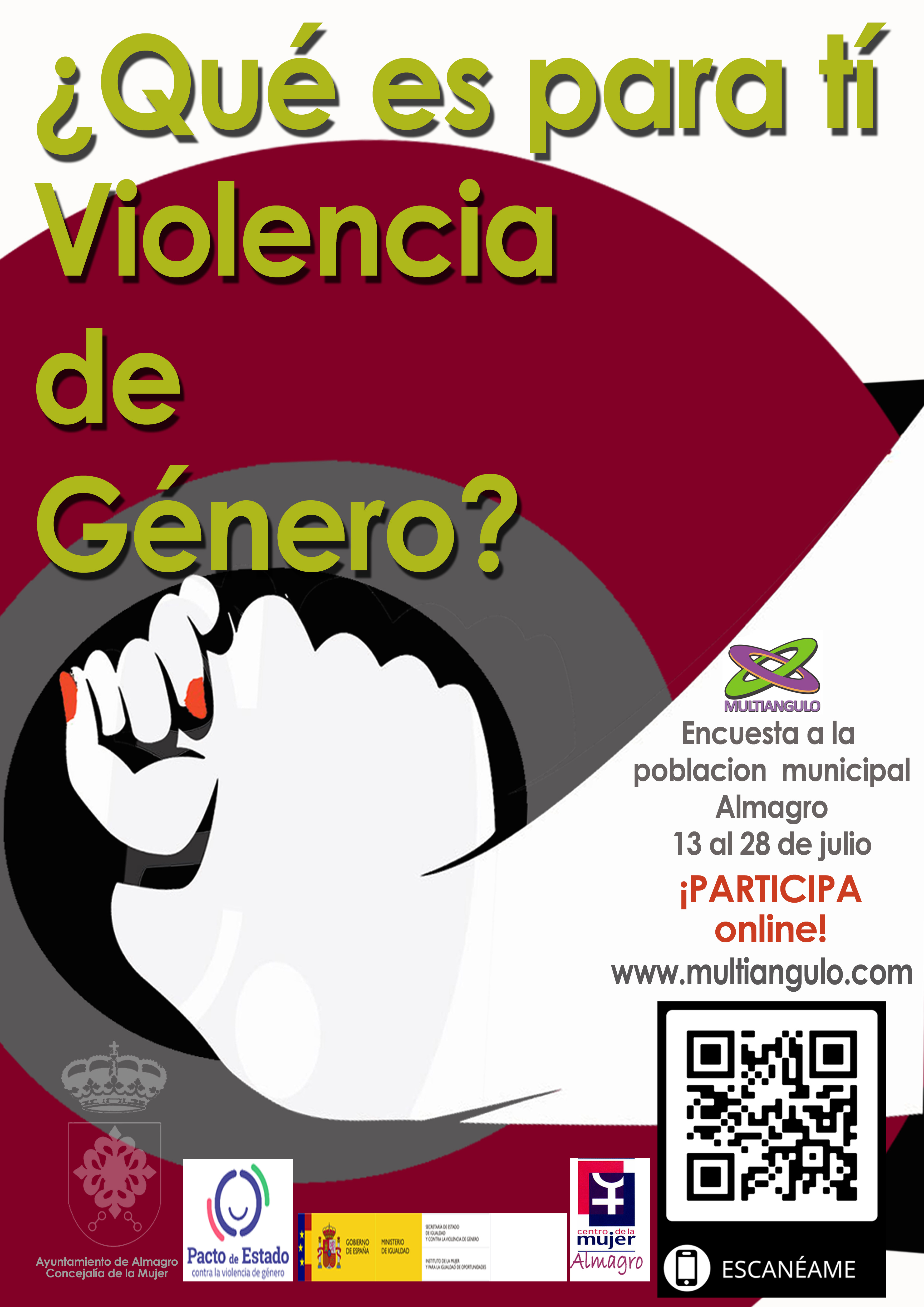 La Concejalía de la Mujer, en su nombre su responsable, solicita la colaboración ciudadana con el equipo de Multiangulo para contestar la encuesta que para estos fines están llevando a cabo durante este mes de julio y en su difusión entre vuestros círculos profesionales y personales
