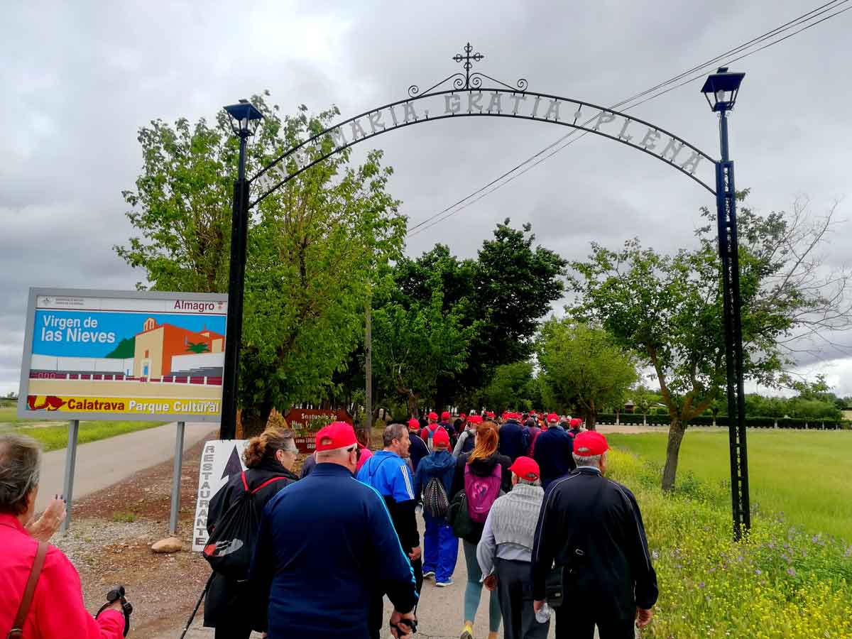 Más de doscientos mayores venidos desde Puertollano, Villanueva de los Infantes, Valdepeñas, La Solana y Almagro participaron en una ruta senderista que les llevo desde la Plaza Mayor de Almagro hasta el Santuario de la Virgen de las Nieves, organizada por la Consejería de Bienestar Social.