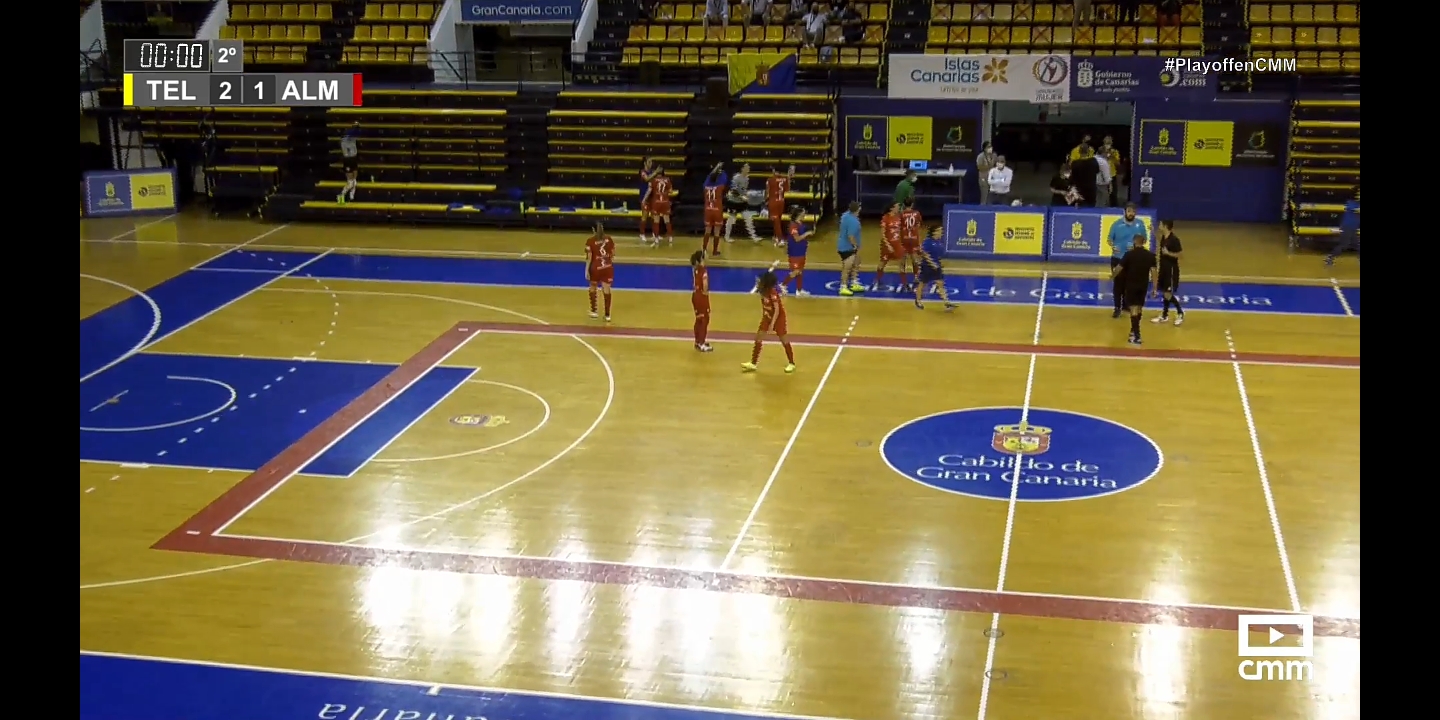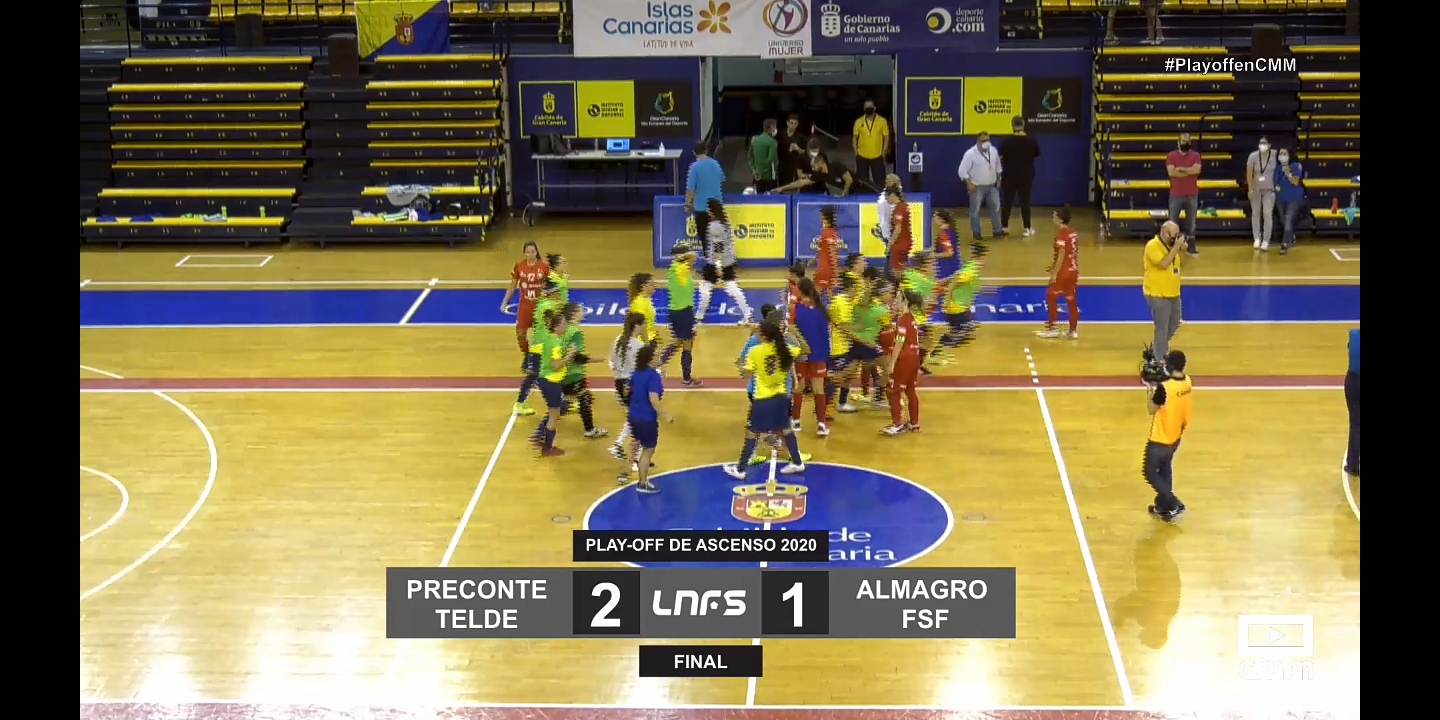 A partir de ese momento Almagro se creció hasta el punto de asediar absolutamente a su rival, llegando a mandar hasta dos disparos al palo en los pies de Isa primero y Merce después. Pero hubo además varios disparos peligrosos de Virgi o Rebeca, hasta que una decisión arbitral cuanto menos discutible mandó a Rebeca fuera al mostrarle la segunda amarilla por ejecutar indebidamente un cambio cuando se disponía a ejercer de portera jugadora. Faltaban tres y medio para el final, y las de Pedro Madrid consiguieron sobreponerse a los minutos de inferioridad peleando hasta el último segundo, pero no pudo ser y la victoria y el ascenso se quedaron en Canarias.