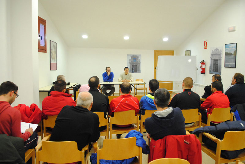 En ese mismo lugar se desarrolló la segunda charla con el entrenador nivel III de fútbol y director de la escuela municipal de fútbol, Jesús Pedro Moreno Lara, quien reunió a los monitores entorno a una típica pizarra de estrategia para hablar de aspectos básicos del juego, centrada lógicamente en fútbol y fútbol sala. La jornada se cerró de una manera mucho más práctica con la tercera ponencia, a cargo del también entrenador nivel III de fútbol Salvador Malagón Villanueva, quien explicó diferentes situaciones de estrategia en el juego combinativo por banda, contando además con la colaboración de futbolistas de las categorías inferiores de la localidad