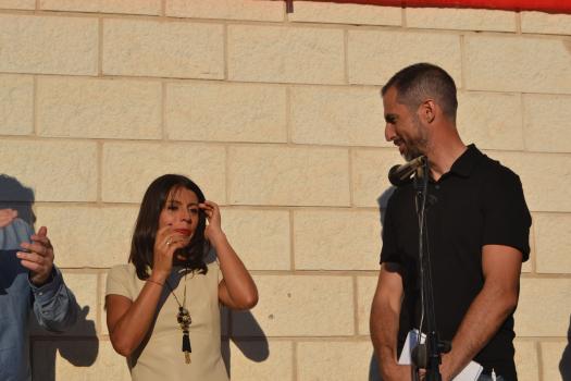 “Es un día muy especial y muy importante para mí, es el reconocimiento a mucho esfuerzo, perseverancia, sacrificio”, expresó emocionada Gemma Arenas minutos antes de descubrir su nombre escrito en la fachada del pabellón deportivo de Almagro, situado junto al recinto ferial. La atleta almagreña agradeció a su familia, amigos, a su empresa Torytrans en la que trabaja durante 22 años, a sus patrocinadores y a las instituciones públicas el apoyo que ha recibido y el que sigue recibiendo: “Muchas gracias a todos, cuando me flaquean las fuerzas me acuerdo de todos vosotros, sois el último empujón” También recordó a su padre fallecido, con un beso y una mirada hacia el cielo, conteniendo las lágrimas en este día tan especial para la deportista en la que estuvo acompañada de muchos familiares, almagreños y amigos.