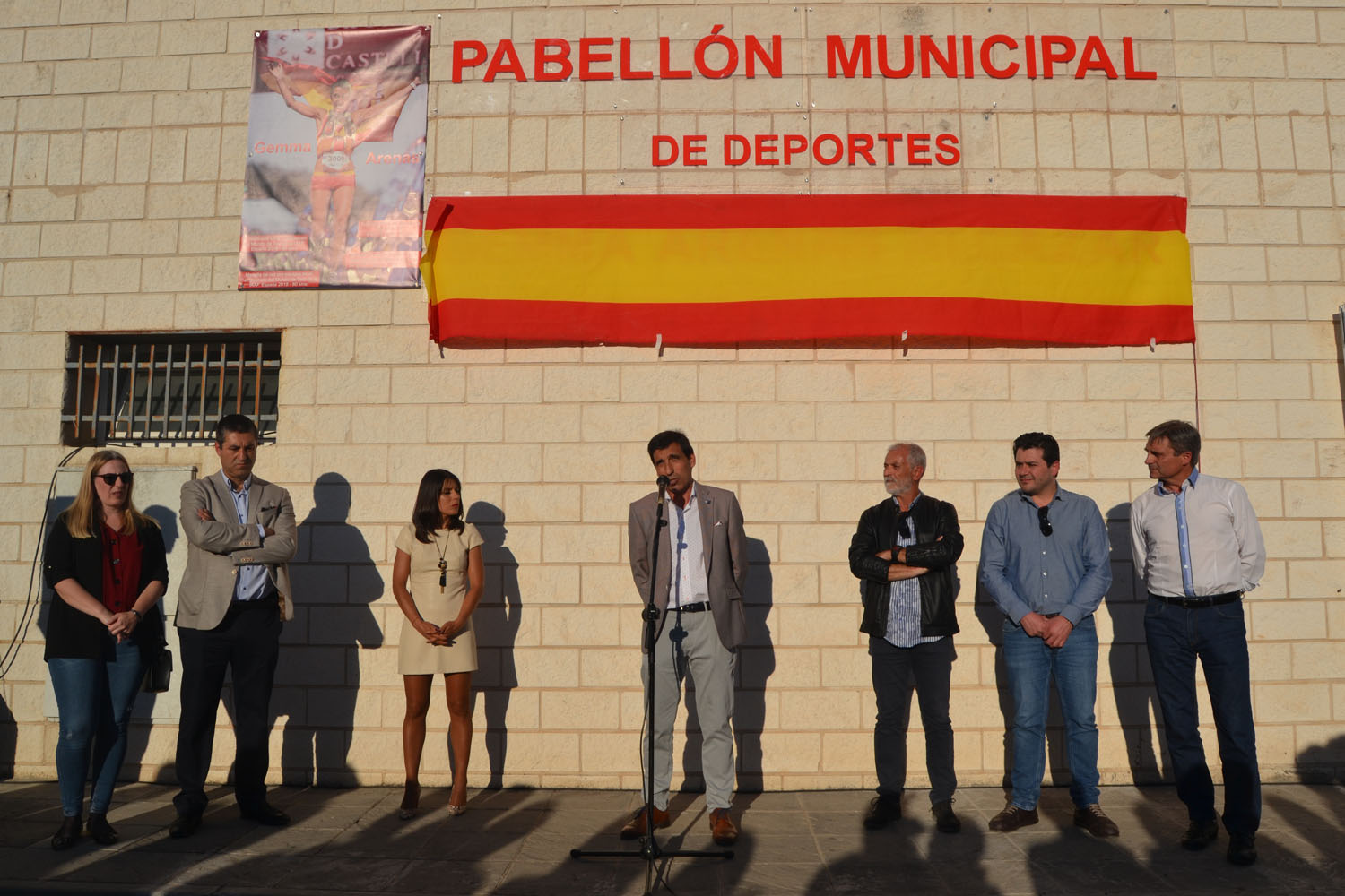 Al acto de descubrimiento del nombre del pabellón asistieron representantes de las instituciones públicas que apoyan a Gemma Arenas. En nombre de los almagreños, el alcalde Daniel Reina y el concejal de Deportes Jesús Santacruz, destacaron la valía personal y deportiva del atleta, “principal deportista de Almagro”; es importantísimo que infraestructuras como estas queden grabadas con alguien sumamente importante, Gemma eres hoy nuestro ídolo deportivo”, indicó Daniel Reina durante su intervención. Santacruz, por su parte, dijo que poner el nombre de Gema Arenas al pabellón es “una imagen de lo que siente Almagro “, el reconocimiento a una deportista que lleva el nombre de Almagro por todo el mundo.