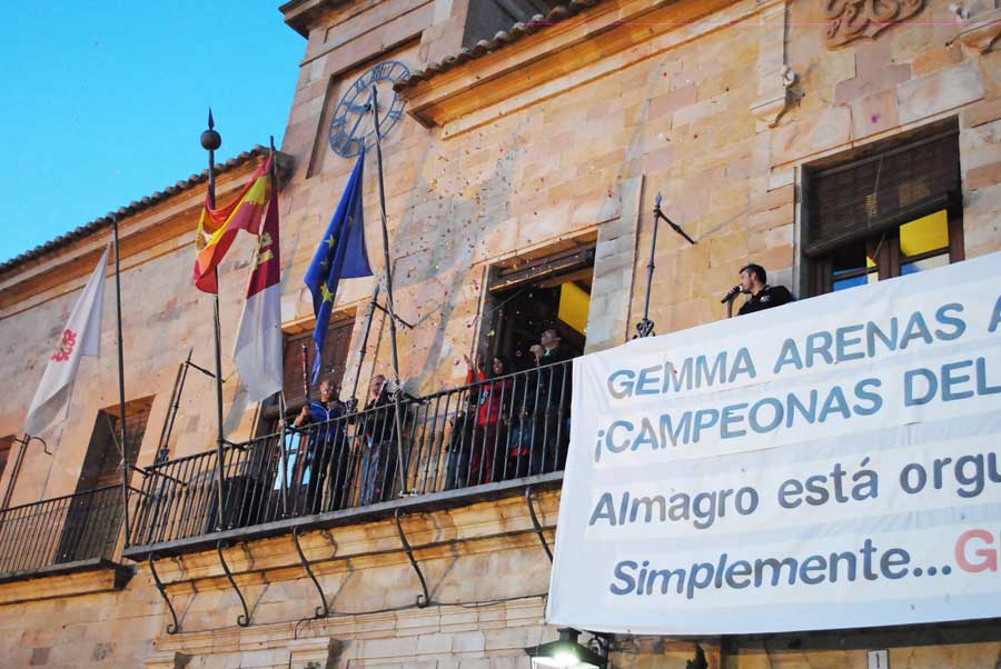 En la noche del lunes, Gemma Arenas, con la medalla de Campeona del Mundo al cuello, fue recibida por sus paisanos y amigos en el Ayuntamiento de Almagro para celebrar su mayor éxito con la Selección Española de Trail, el título mundial por equipos en la Penyagolosa (Castellón). Todos la esperaban delante de la casa consistorial, donde fue recibida por las autoridades y con los típicos gritos de campeona, campeona, por parte de los almagreños, orgullosos de tener a Gemma como abanderada de la ciudad en el mundo entero.