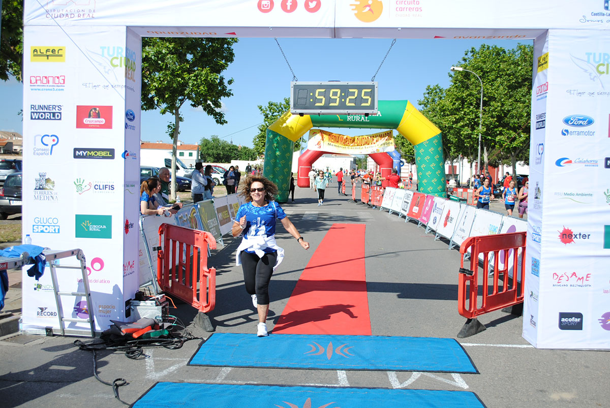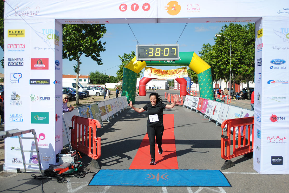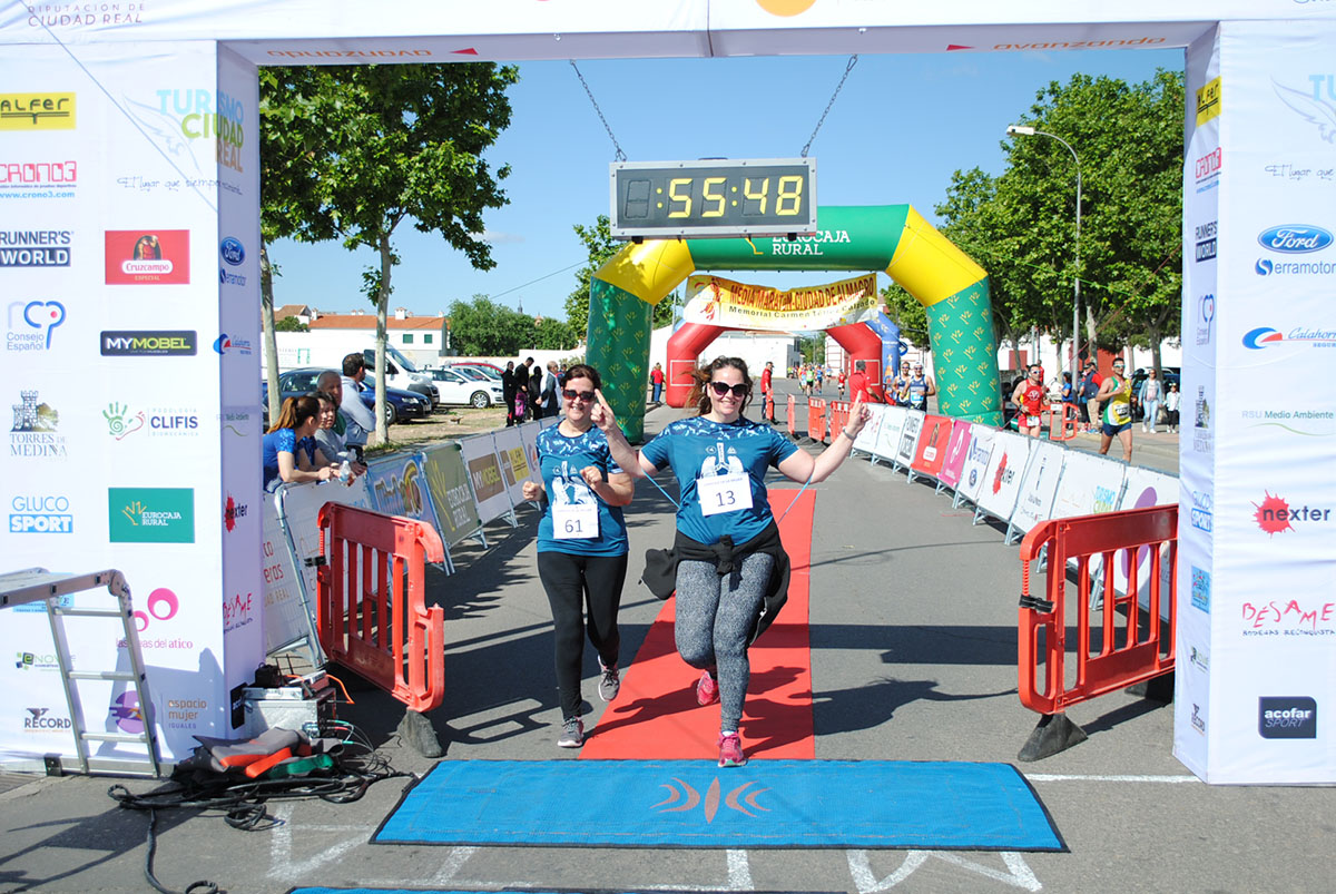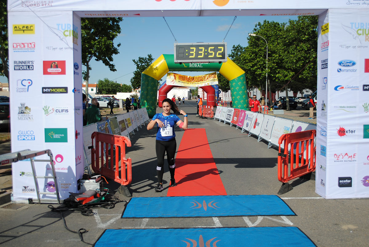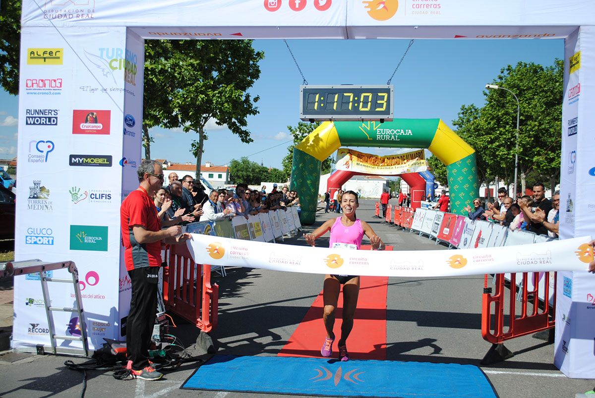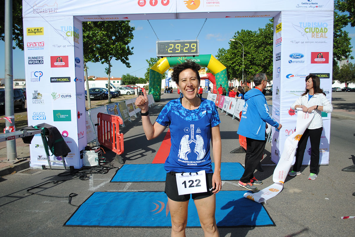 Gemma Arenas, del Club Trijote, protagonizó la categoría femenina, ya que como es habitual en ella dominó la prueba de principio a fin, consiguiendo además quedar la decimotercera clasificada en la general, mejorando el crono de la pasada edición en más de un minuto y con ello estableciendo un nuevo récord de la prueba en categoría femenina. Este es su triunfo número 59 en el circuito y el séptimo en su casa, en Almagro. Como segunda clasificada y a más de ocho minutos llegó Esther Jiménez de los Galanes, del C.A. Saturno, y en tercer lugar Mª Victoria García Vaquero, del CD Pozo Norte, quien mejoró su tiempo de la pasada edición en un minuto y medio. Gran carrera de las tres, que repitieron el mismo podio del año 2018.