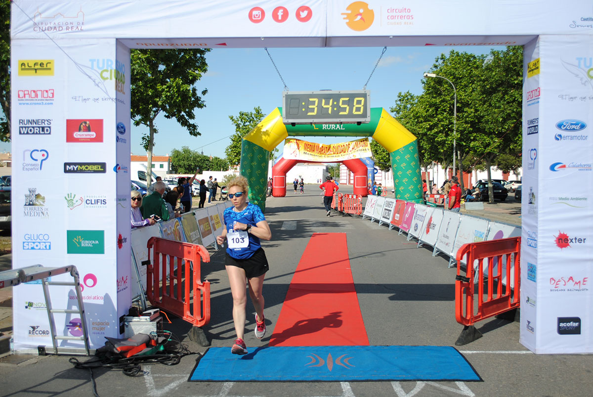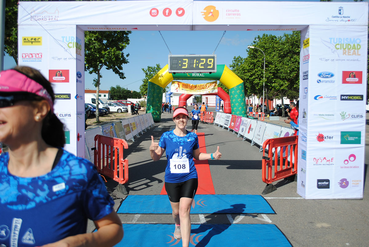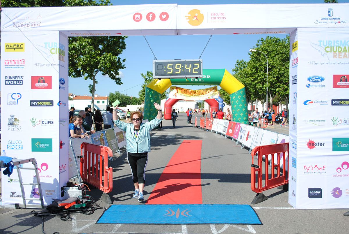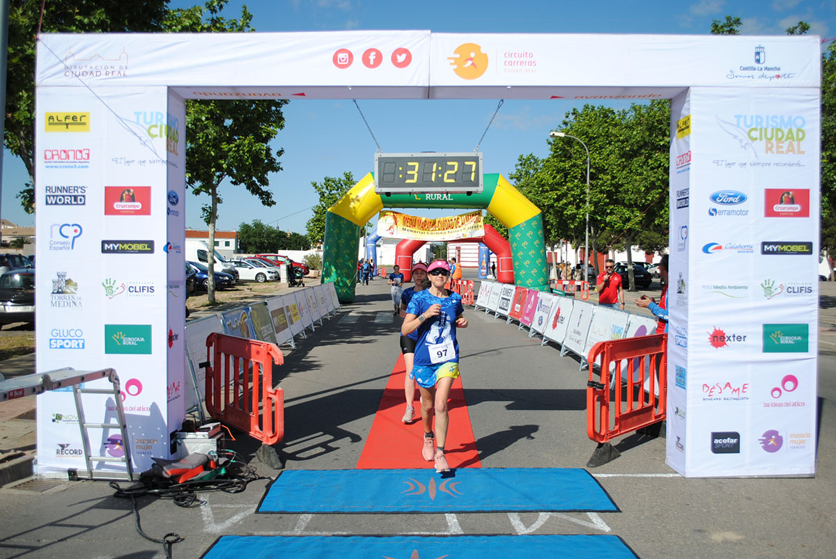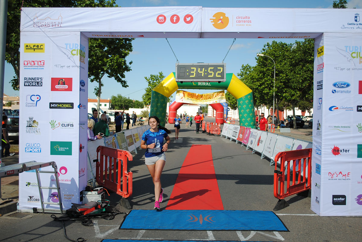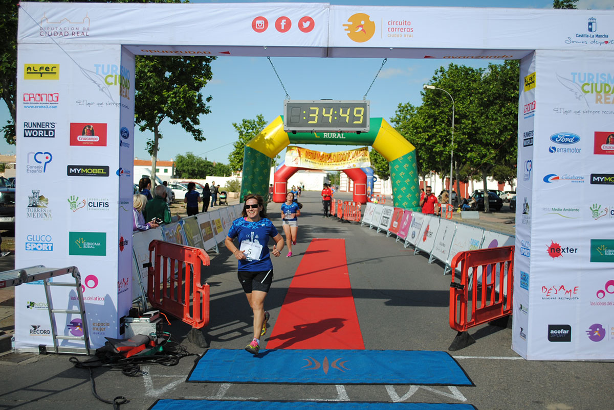 Gemma Arenas, del Club Trijote, protagonizó la categoría femenina, ya que como es habitual en ella dominó la prueba de principio a fin, consiguiendo además quedar la decimotercera clasificada en la general, mejorando el crono de la pasada edición en más de un minuto y con ello estableciendo un nuevo récord de la prueba en categoría femenina. Este es su triunfo número 59 en el circuito y el séptimo en su casa, en Almagro. Como segunda clasificada y a más de ocho minutos llegó Esther Jiménez de los Galanes, del C.A. Saturno, y en tercer lugar Mª Victoria García Vaquero, del CD Pozo Norte, quien mejoró su tiempo de la pasada edición en un minuto y medio. Gran carrera de las tres, que repitieron el mismo podio del año 2018.