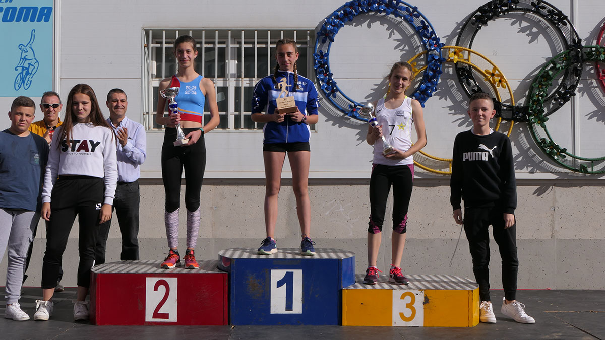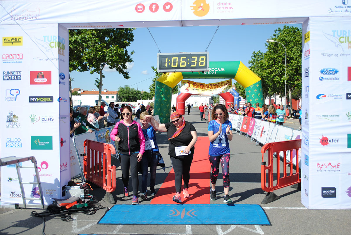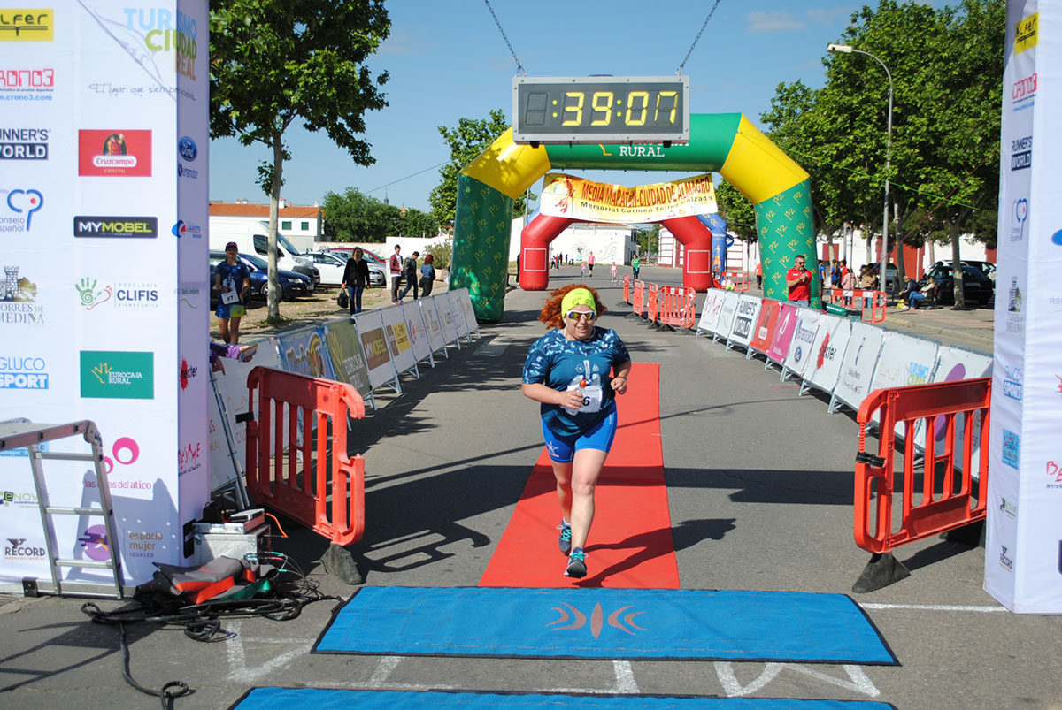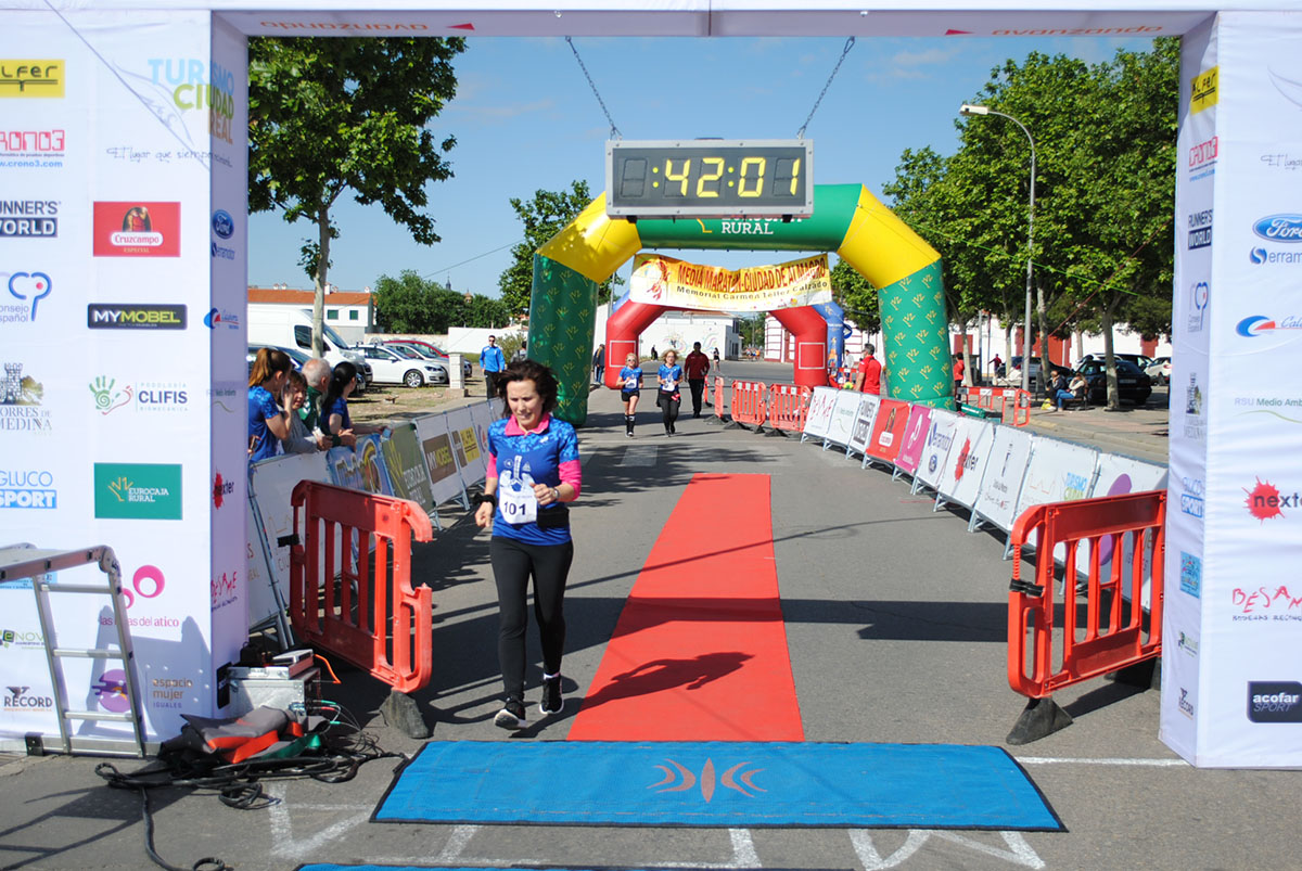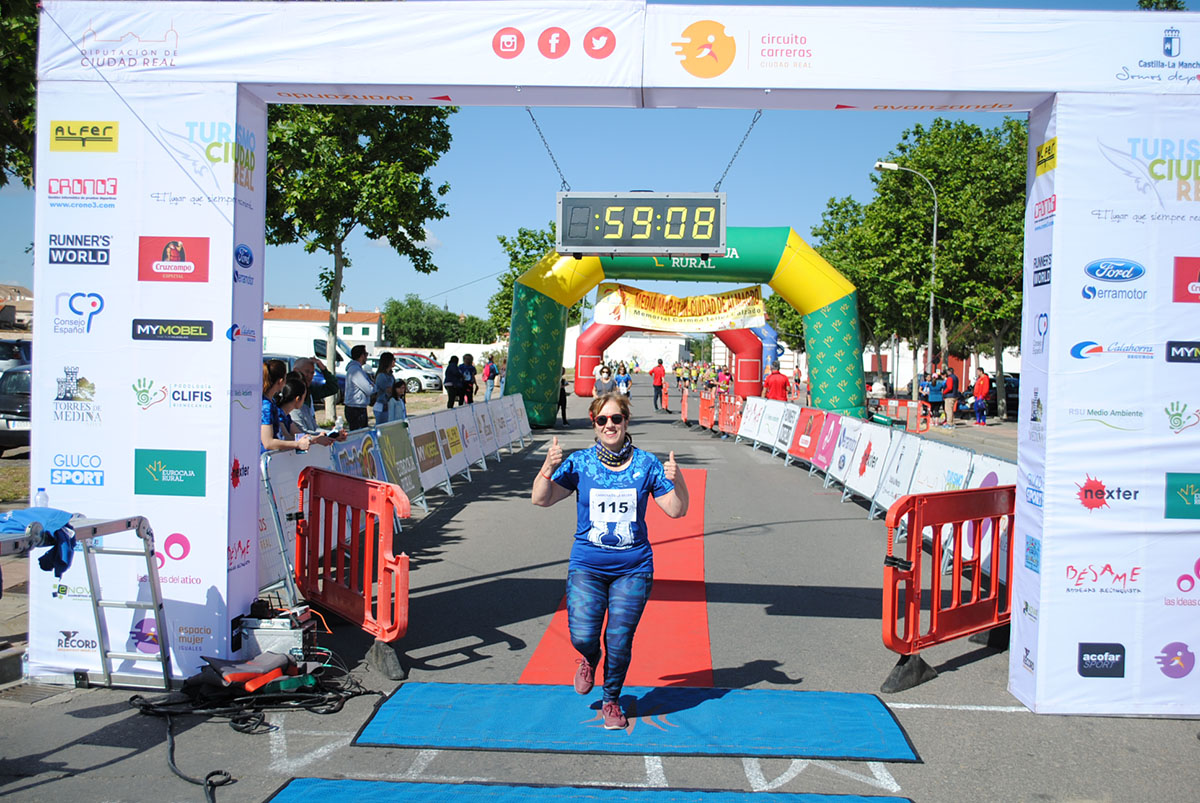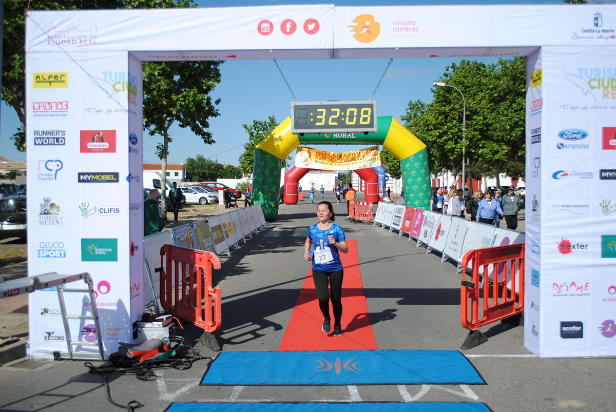 Gemma Arenas, del Club Trijote, protagonizó la categoría femenina, ya que como es habitual en ella dominó la prueba de principio a fin, consiguiendo además quedar la decimotercera clasificada en la general, mejorando el crono de la pasada edición en más de un minuto y con ello estableciendo un nuevo récord de la prueba en categoría femenina. Este es su triunfo número 59 en el circuito y el séptimo en su casa, en Almagro. Como segunda clasificada y a más de ocho minutos llegó Esther Jiménez de los Galanes, del C.A. Saturno, y en tercer lugar Mª Victoria García Vaquero, del CD Pozo Norte, quien mejoró su tiempo de la pasada edición en un minuto y medio. Gran carrera de las tres, que repitieron el mismo podio del año 2018.