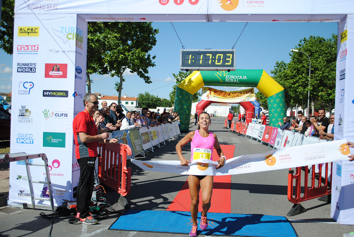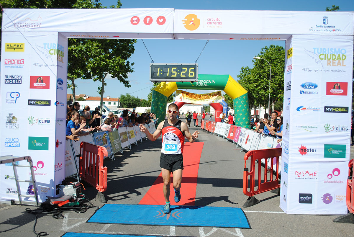 Gemma Arenas, del Club Trijote, y Javier Martín Merino, del Club Corricollano de Puertollano, fueron los ganadores el pasado domingo en la Ecorace XV Media Maratón Ciudad de Almagro “VII Memorial Carmen Téllez Calzado”, prueba organizada por el Almagro Trotón Club en estrecha colaboración con el Ayuntamiento de Almagro, y en la que 625 atletas consiguieron finalizar el recorrido.