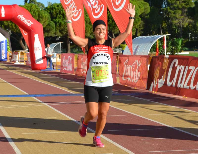 Pero hubo otra alegría más para una almagreña, ya que Ana María Velázquez, del Almagro Trotón Club, se impuso en el cuadro femenino de la distancia de 10 kilómetros que se corría de manera simultánea. Ana María fue la primera mujer en meta con un tiempo de 44 minutos y 30 segundos.