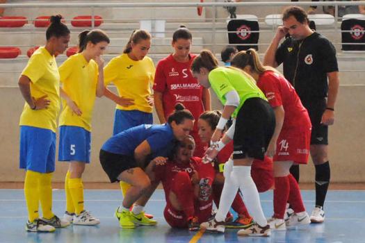 Almagro y Puertollano abrieron la tarde con un partido muy igualado aunque con pocas ocasiones. Las de Puertollano tuvieron un disparo al larguero en una primera parte en la que las de Ramón Lozano no encontraron su mejor versión, gozando aun así de una buena ocasión en las botas de María Arranz. Pero la nota negativa estuvo sin duda en la lesión de Isa de manera fortuita en un balón dividido. Visiblemente dolorida abandonó la pista en volandas llevada por sus compañeras, y todo apuntaba a que al menos sufría un fuerte esguince de tobillo que cortará en seco su preparación de pretemporada.