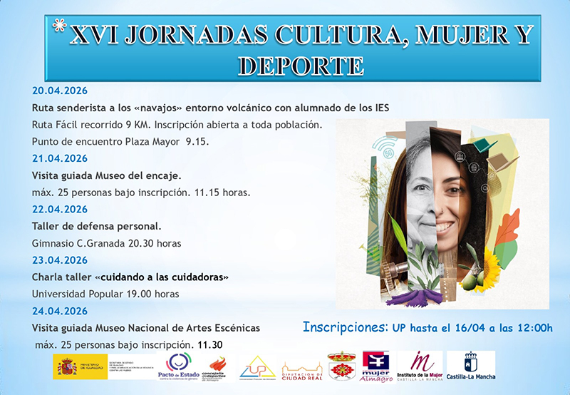 Con la finalidad de fomentar la participación, la igualdad y la actividad física entre mujeres y la población en general, el Ayuntamiento de Almagro organizada las XVI Jornadas Cultura, Mujer y Deporte.