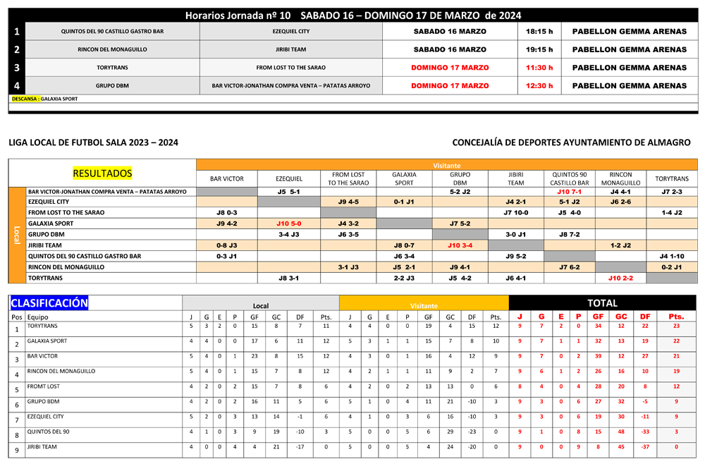 LIGA DE FÚTBOL SALA LOCAL - Horarios Jornada nº 11