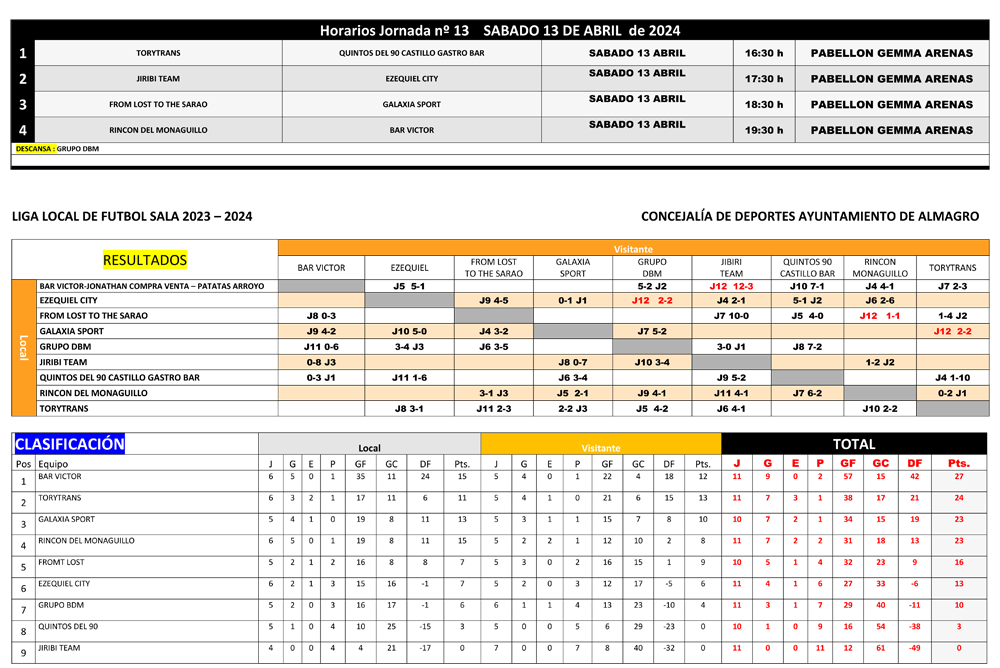 LIGA DE FÚTBOL SALA LOCAL - Horarios Jornada nº 13
