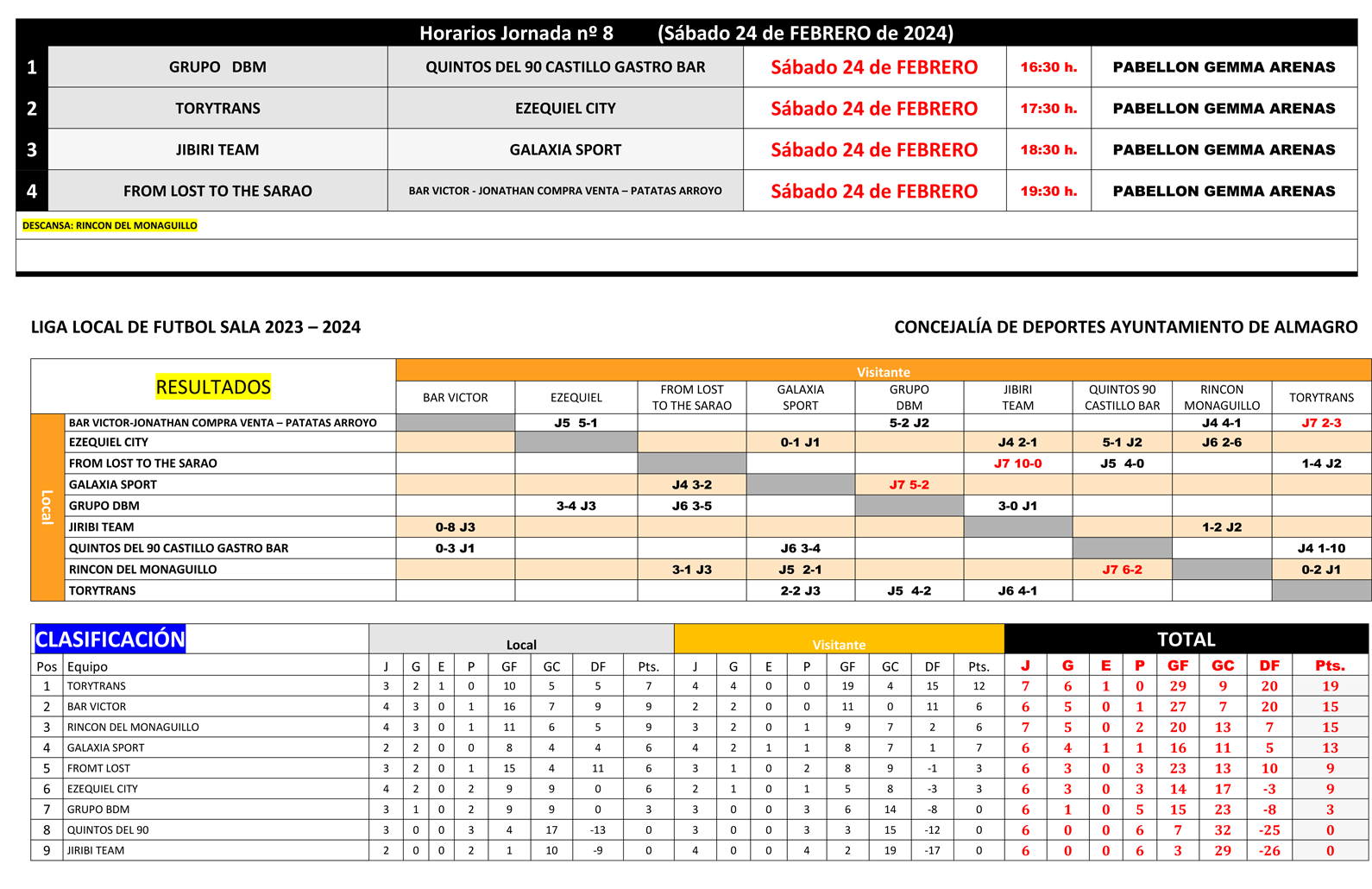 LIGA DE FÚTBOL SALA LOCAL - Horarios Jornada nº 8