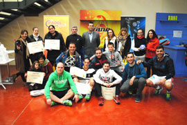 El domingo por la mañana se celebraron las finales en las tres categorías de juego del I Máster de Pádel “Ciudad de Almagro”, una iniciativa de la Concejalía de Deportes para incentivar el sistema de competición local en este deporte y que se puede calificar como un éxito absoluto. Jesús Santacruz, concejal de Deportes, entregó los premios a los ganadores en las pistas de Padel Plus, complejo que ha albergado de manera desinteresada la fase final de este torneo. Hay que destacar la colaboración igualmente de la IGP Berenjena de Almagro con la donación de este producto tan típico para todos los premiados.