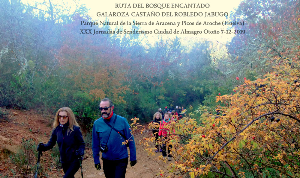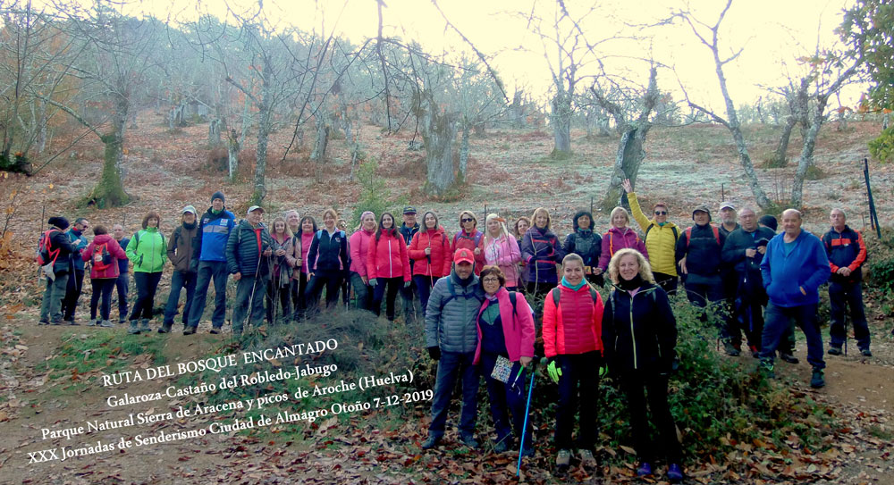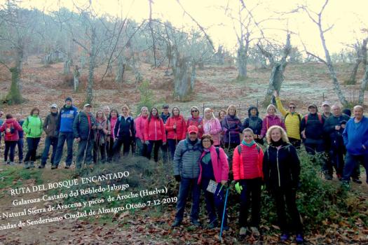 Este fin de semana los senderistas almagreños han realizado las dos últimas rutas del año senderista de 2019 enmarcadas en las XXX Jornadas de Senderismo Ciudad de Almagro Otoño 2019, que organiza la Concejalía de Deportes. El lugar elegido para la clausura del año senderista ha sido Huelva. Concretamente han recorrido este pasado fin de semana el Parque Natural de la Sierra de Aracena y picos de Aroche. “Un bellísimo parque natural que forma parte de la Sierra Morena y que aúna una exuberante vegetación mediterránea con un modelo de vida rural donde el hombre y la naturaleza mantienen un equilibrio razonable y donde la arquitectura serrana de estos municipios se ha mantenido y conservado en perfecto estado”, explica el coordinador de las rutas, José Vicente Gómez.