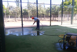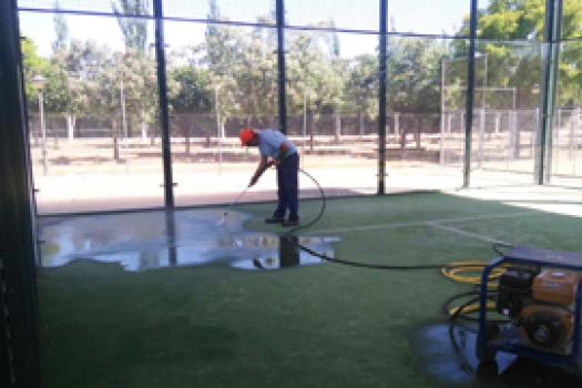 La superficie de la pista cubierta de pádel ha sido descompactada con un tratamiento de agua para alargar su vida útil