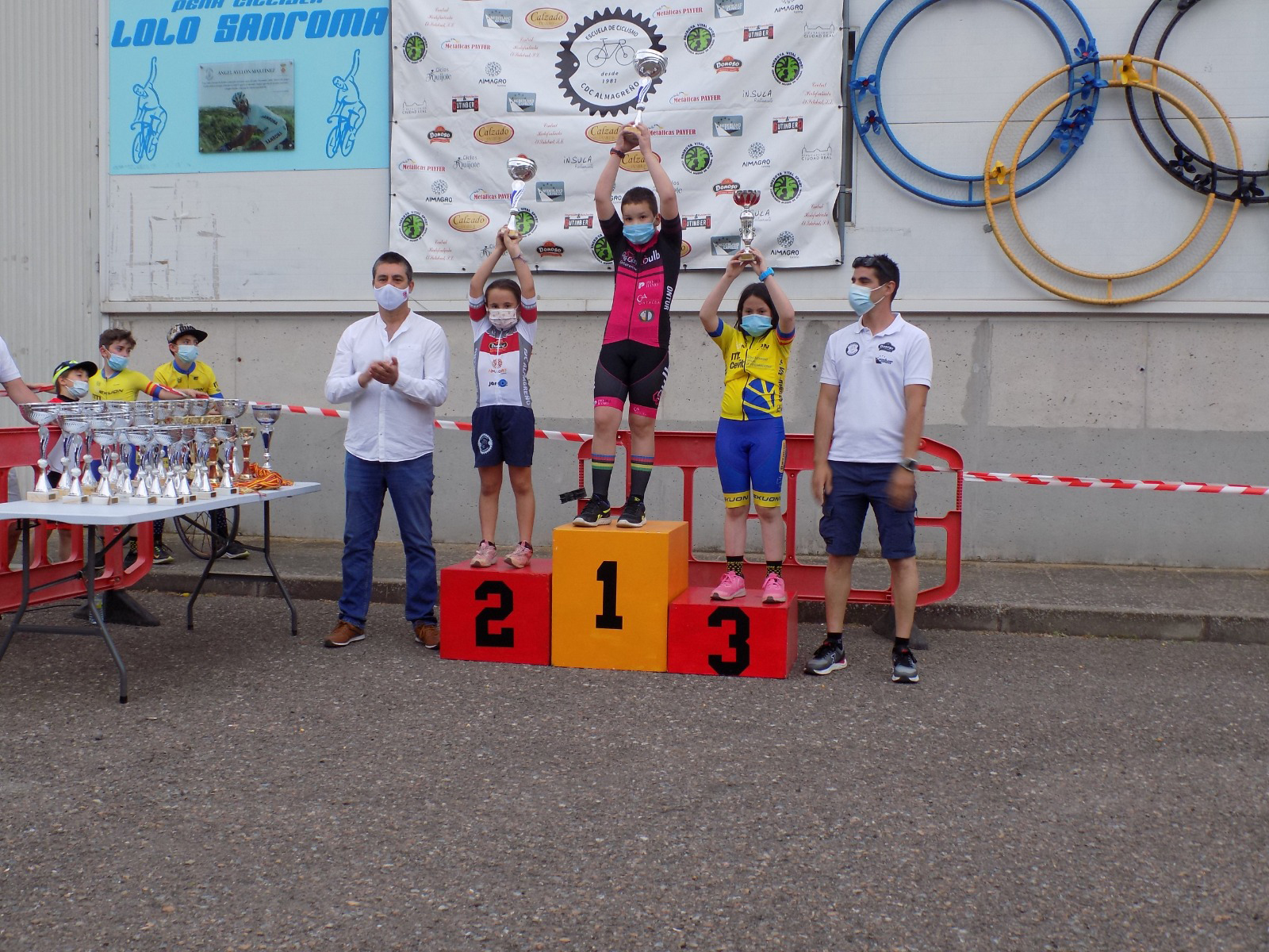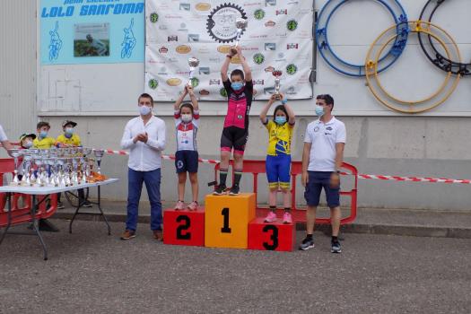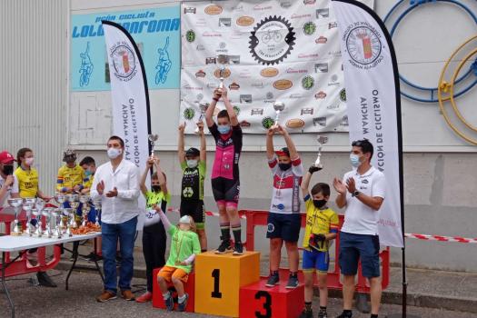 La jornada comenzaba con la prueba de yincana sobre el circuito nº1 para los más pequeños de la competición: los chicos y chicas de las categorías promesas y principiante. Agustín Chaves y Naia Díaz, del Club Ciclista Almagreño, consiguieron ambos un 2º puesto en esta prueba.