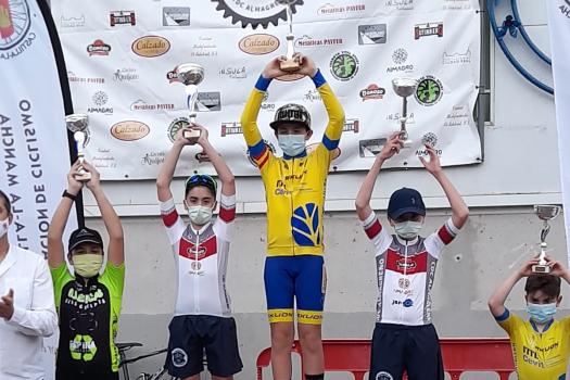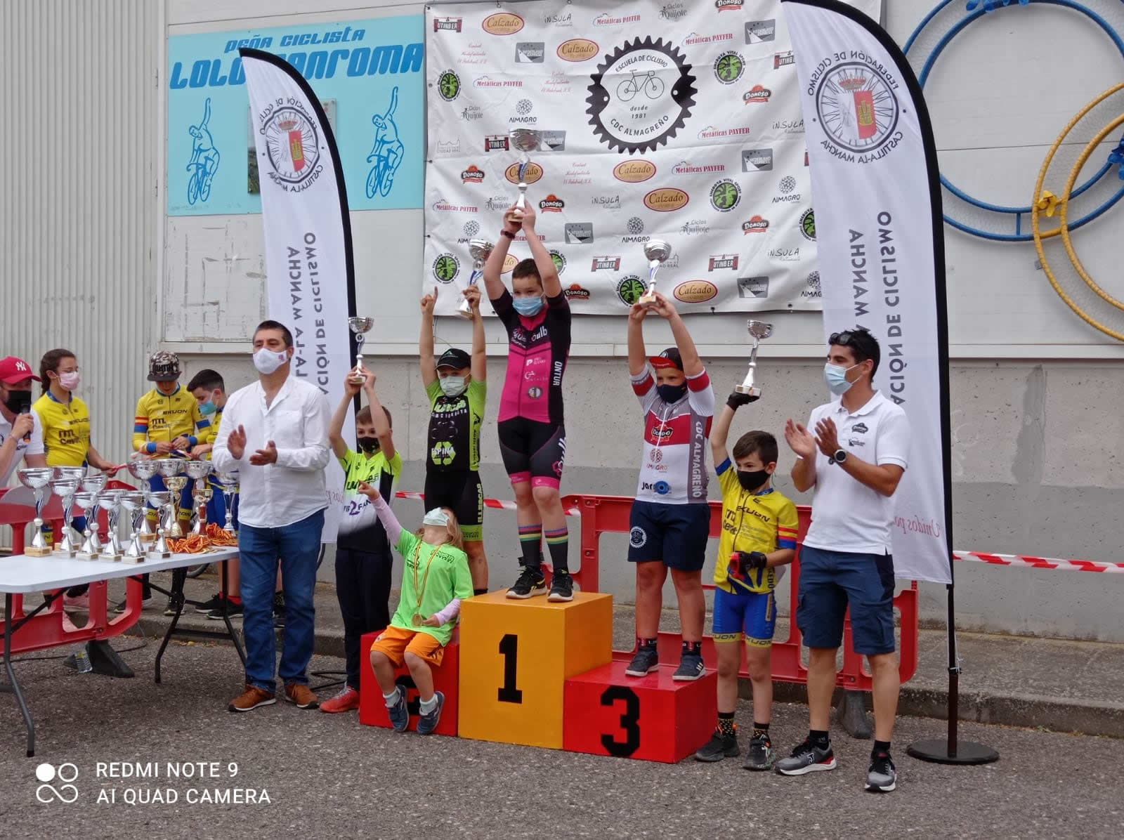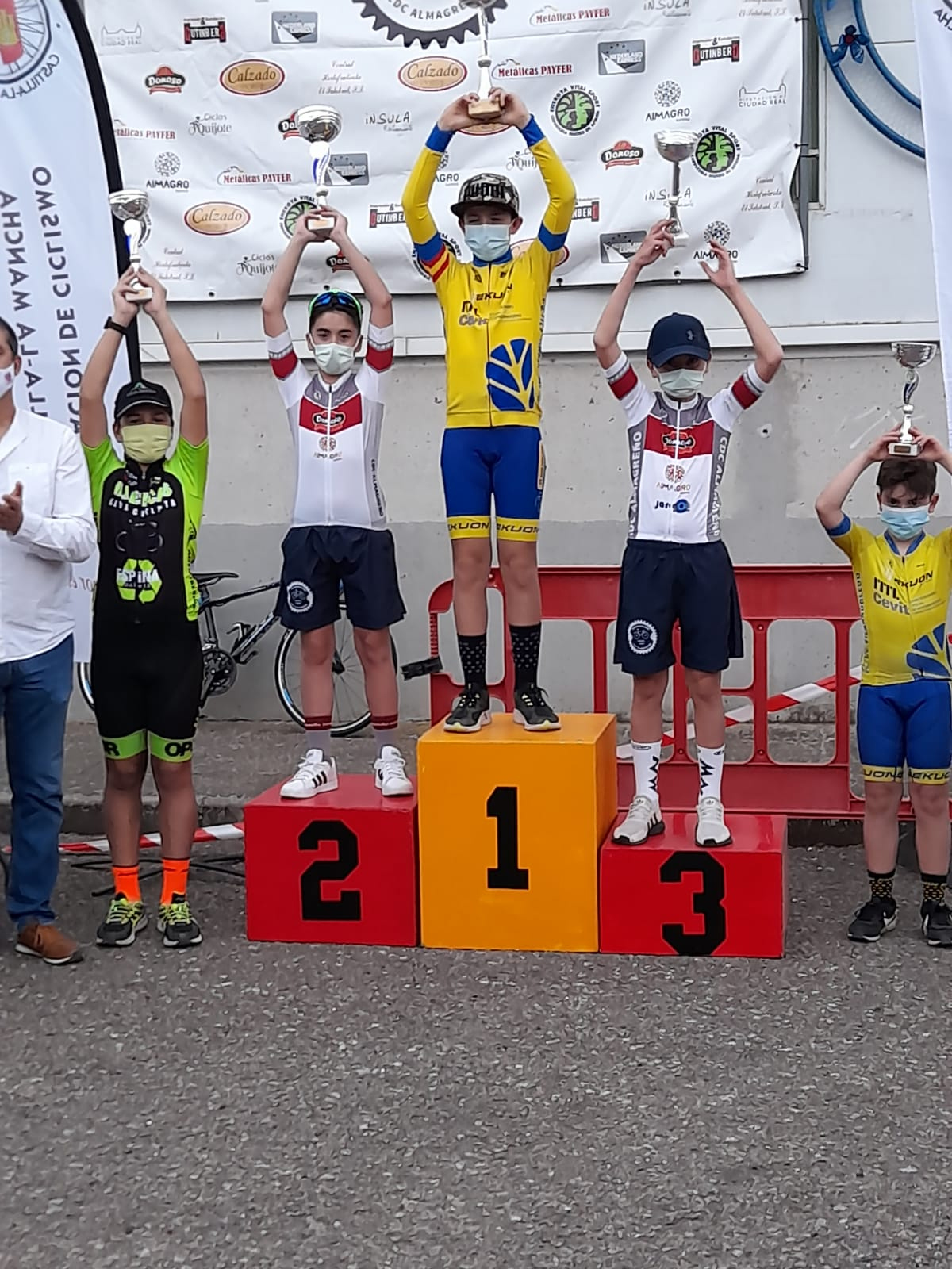 En la prueba alevín, ocho vueltas y escapada de tres corredores que resolvieron la carrera en un ajustado sprint sobre línea de meta, en la que los corredores del Club Almagreño Iván Santos y Alonso Carbonell se alzaron con un segundo y tercer puesto respectivamente.
