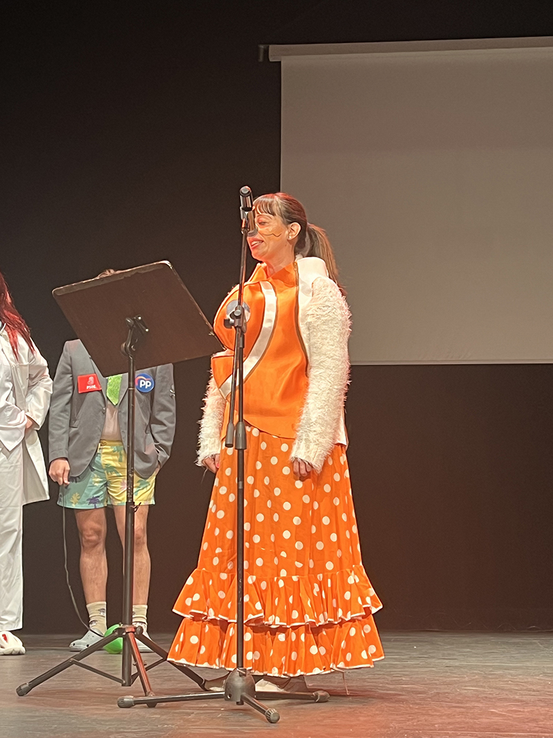 El momento más emotivo llegó con la intervención de Cristina Vicente, carnavalera con más de 30 años de experiencia, que subió al escenario junto a sus "meninas", el mismísimo Velázquez e incluso el fantasma del Teatro. Con nostalgia y alegría, recordó momentos inolvidables vividos en el Carnaval, reivindicando esta fiesta como parte esencial de la identidad de Almagro.