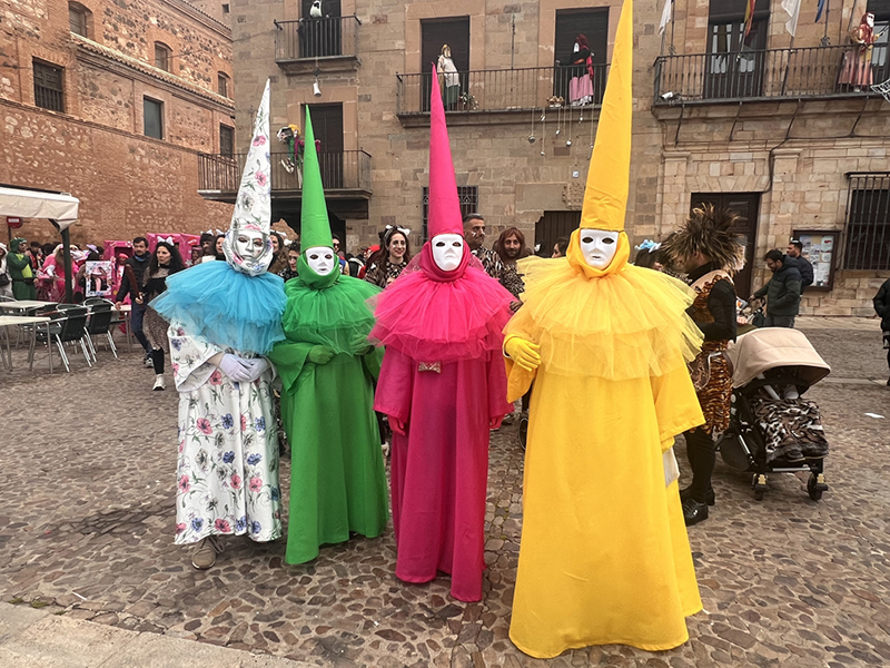 El Carnaval ha comenzado en Almagro con una destacada participación. Vecinos de todas las edades disfrutaron en esta jornada inaugural en la Plaza Mayor, donde la protagonista indiscutible de fue la tradicional máscara guarrona, que aportó un toque divertido a la celebración.