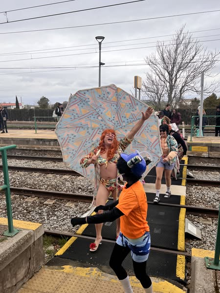 A pesar del frío, algunas gotas de agua y algo de viento, los almagreños y visitantes no dejaron que el clima empañara la festividad. Con sombrillas, toallas y el mejor ánimo, Las Cachondísimas 2025: La sensación del Jabalón encabezaron la comitiva de bienvenida, animada por la charanga Los Ruidosos. Desde la estación de tren hasta la Plaza Mayor, la calle se llenó de personajes de ficción, superhéroes, piratas, payasos y muchos más, creando un ambiente muy carnavalero.