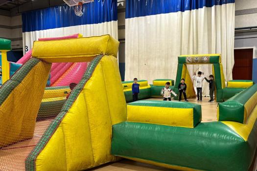 Durante las dos semanas de vacaciones por Navidad, el pabellón José Manuel Roldán es lugar de diversión y juego para niños en edad escolar.