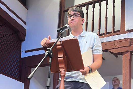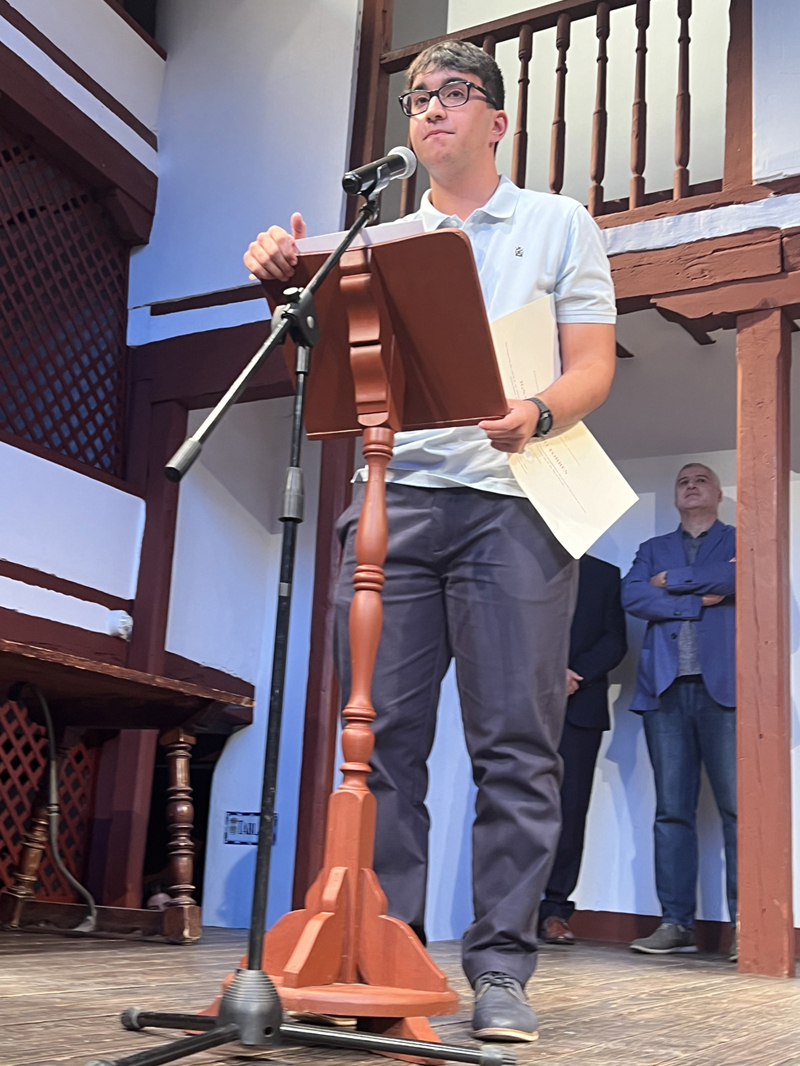 Tras una segunda actuación musical con bombardino por el alumno de la escuela de música Lucas Romero, llegó el momento del reconocimiento al mejor alumno de Almagro de este curso 2023-2024. El alcalde Francisco Javier Núñez hizo entrega de la beca económica del Ayuntamiento de Almagro por un importe de 1.000 euros a Ignacio Romero Torres.