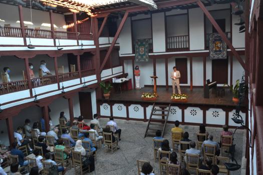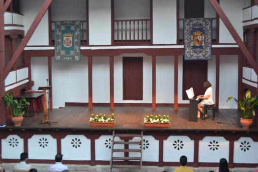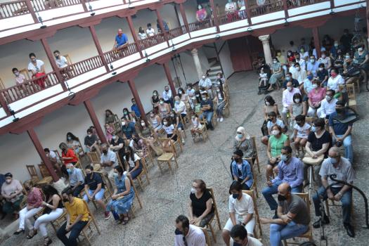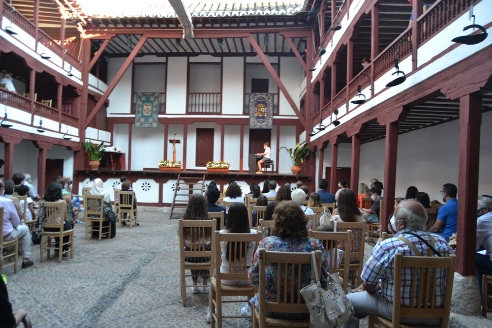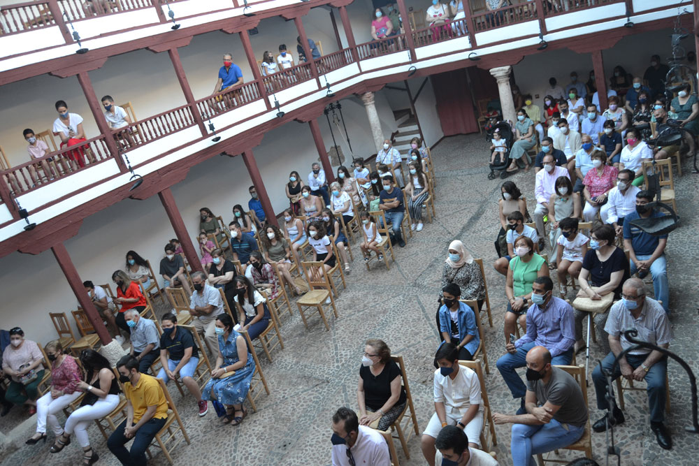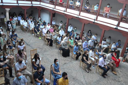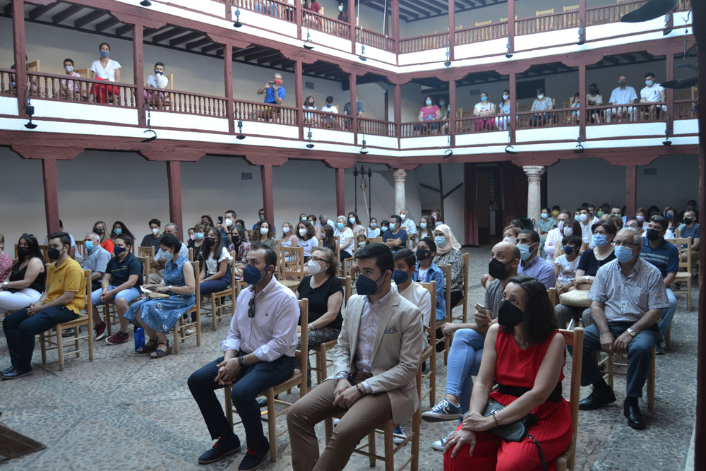 La tarde de ayer en el Corral de Comedias ya fue diferente. Cumpliendo con la normativa en materia de COVID, en la que fue XIV edición de los Premios a la Excelencia Académica “Manuel Calleja”, los alumnos premiados contaron con el apoyo no solo de sus padres y tutores, también de abuelos, familiares y amigos. Uno a uno, subieron al escenario para recibir su diploma de reconocimiento y un obsequio- pen drive, bolígrafo con su nombre y el libro Universo del Diálogo de Manolita Espinosa- de la mano de sus respectivos directores y del alcalde de Almagro, Daniel Reina.