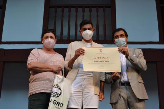 El Ayuntamiento también agradeció el trabajo de los docentes en este complicado año. En nombre de todos ellos, los directores de los centros educativos recibieron un diploma y obsequio. Javier Romero, recibió la beca de 1000 euros del Consistorio como mejor alumno de Bachillerato.