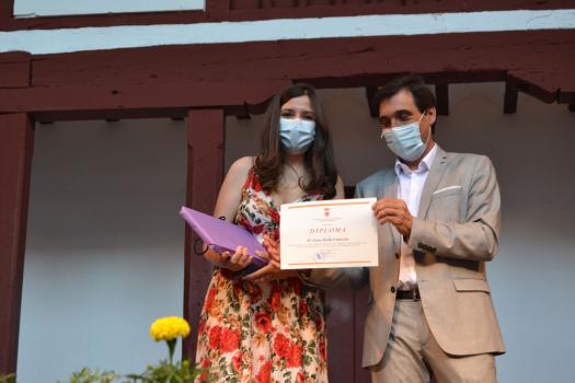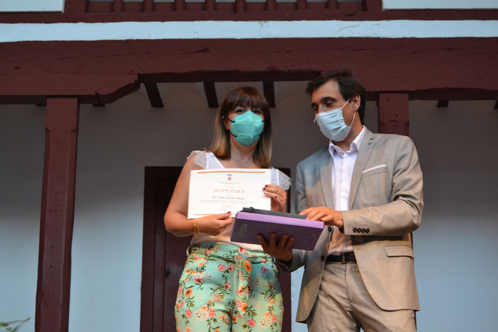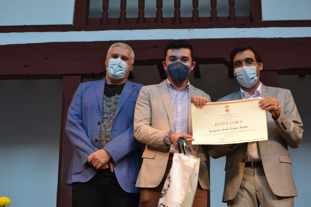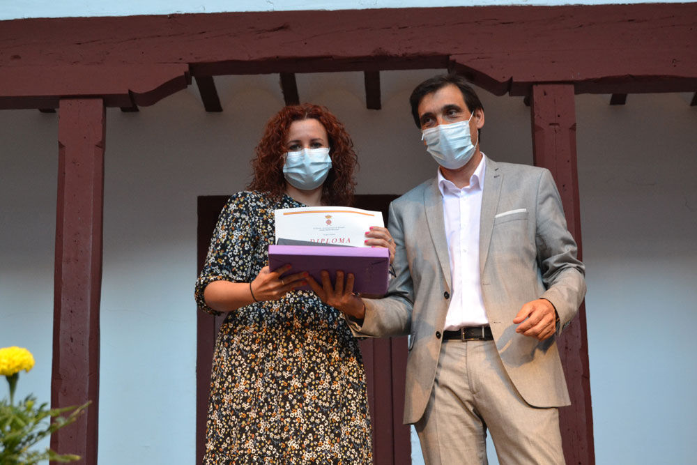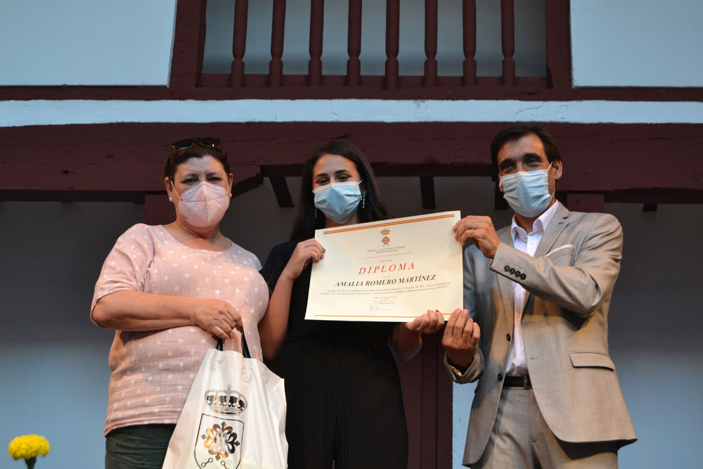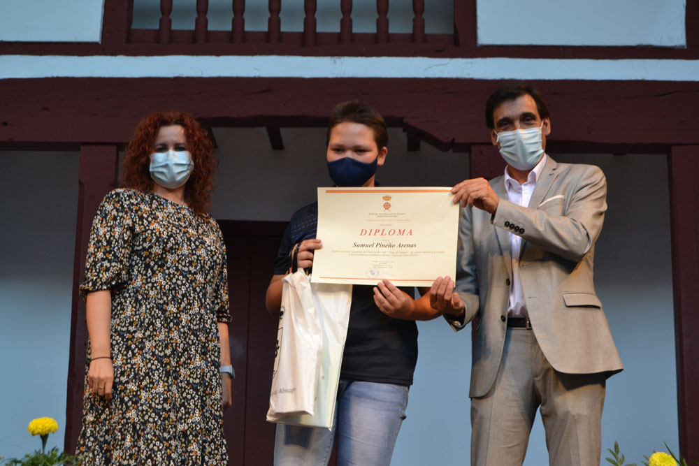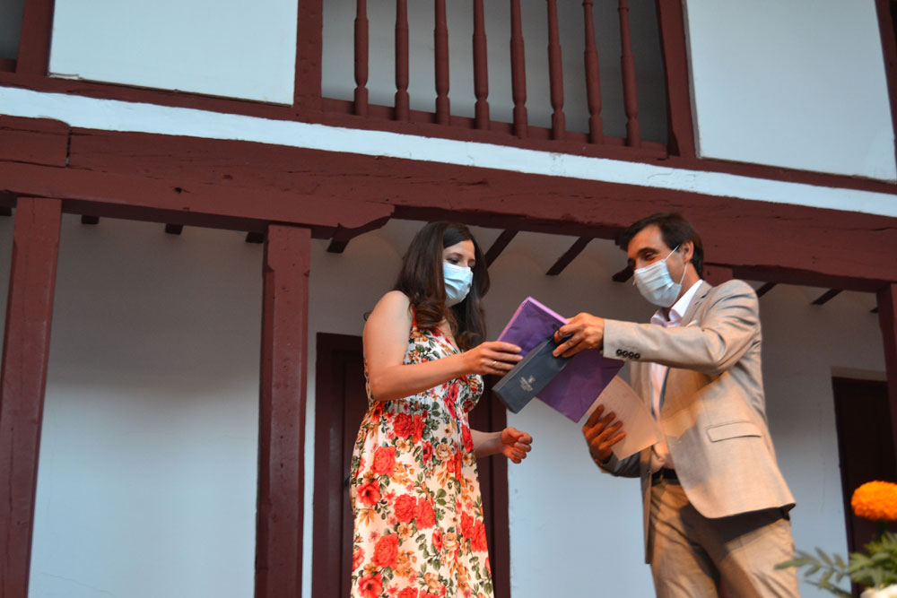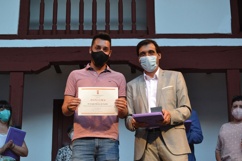 El acto continuó con el reconocimiento al mejor alumno de Almagro de este curso 2020-2021. El alcalde Daniel Reina hizo entrega de la beca del Ayuntamiento de Almagro por un importe de 1.000 euros a Javier Romero Barba, mejor estudiante de Bachillerato.