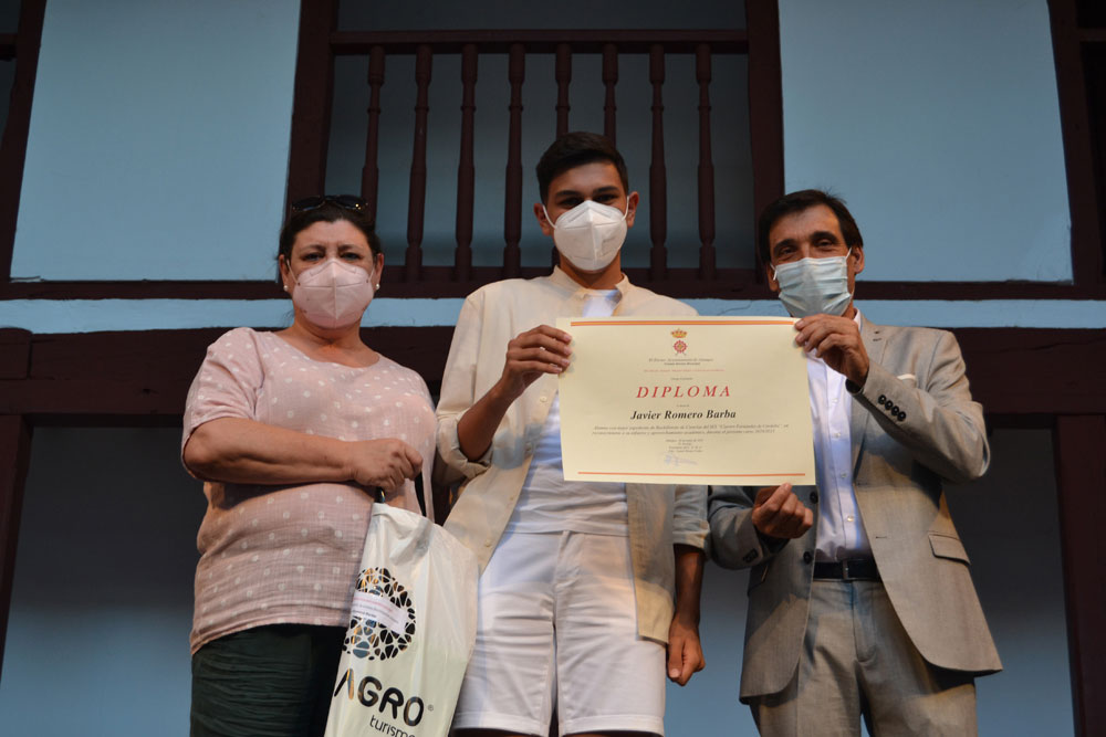 Así, del colegio Miguel de Cervantes recibieron su reconocimiento, Emma Liñares Caro y Lucas Otero Martín; del Paseo Viejo de la Florida: Irene García Ureña y Ahmed Reda Bensaad Guerrouj; del Diego de Almagro: Jorge Araque García y Samuel Pineño Arenas. A continuación, subieron los mejores alumnos de los institutos. Del Clavero F. de Córdoba: Sara Barba Ruiz (ESO), María Triguero Chacón (ESO), Javier Romero Barba (Bachillerato de Ciencias) y Amalia Romero Martínez (Bachillerato de Humanidades); del IES Antonio Calvín: Adrián Vicente Barrios (ESO), Nieves Guzmán Rincón (ESO), Carlota de la Rubia Nieto (Bachillerato de Ciencias) y Joaquín Jesús López Rubio (Bachillerato de Humanidades); Pablo Arroyo Ruiz (Ciclo formativo Grado Superior Diseño y Amueblamiento); Inmaculada del Campo Caballero (Ciclo formativo Grado Superior de Administración y Finanzas). Por último, subió por la Escuela Municipal de Música: Jesús Felipe Amezcua Valencia.