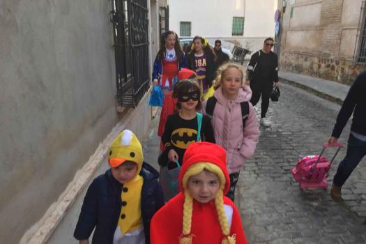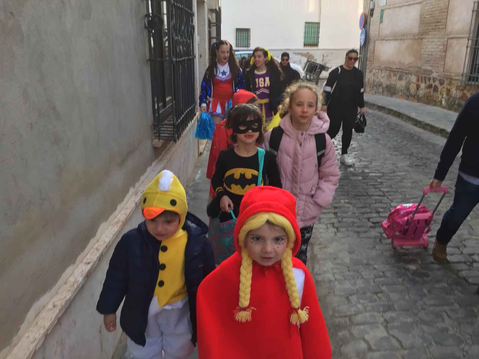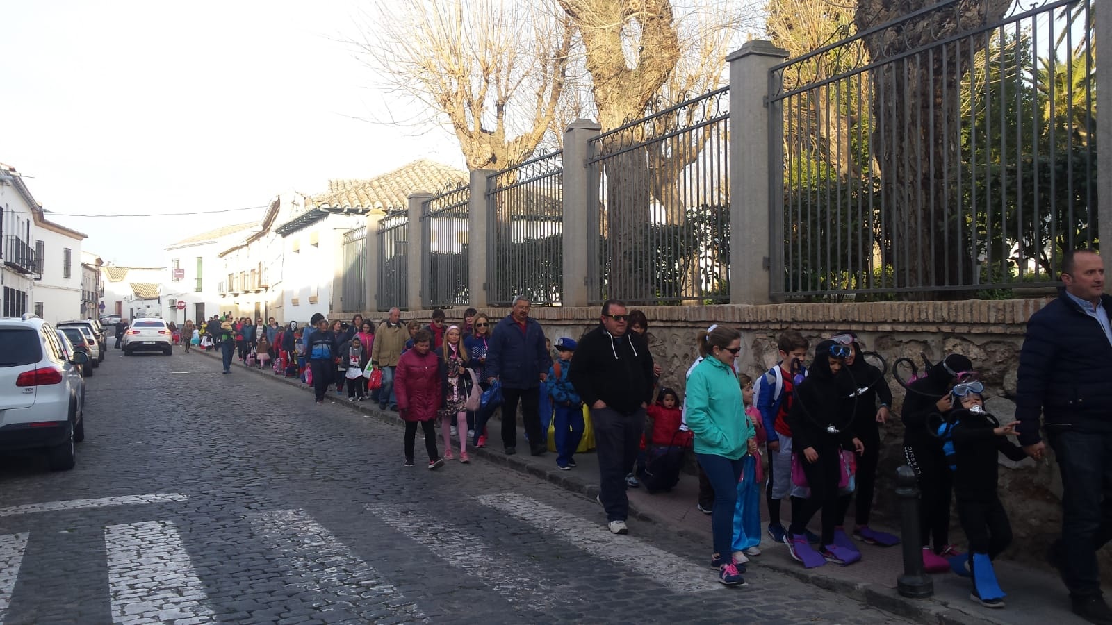 El colegio Miguel de Cervantes ha querido este Carnaval celebrarlo de manera diferente. No han faltado los disfraces, las máscaras y los bailes carnavaleros pero además, enmarcado en el Proyecto Escolar Saludable que desarrollan han animado a sus alumnos a llegar al centro educativo andando. Dos nutridos grupos de niños y niñas de todas las edades acompañados de sus padres y profesores se han dado cita a las puertas del Parador y en lugar conocido como “la antigua báscula”. Con la temática de libres y saludables, se ha realizado la primera actividad del Carnaval del colegio almagreño “Andando al cole” con alumnos disfrazados de superhéroes, princesas, payasos…