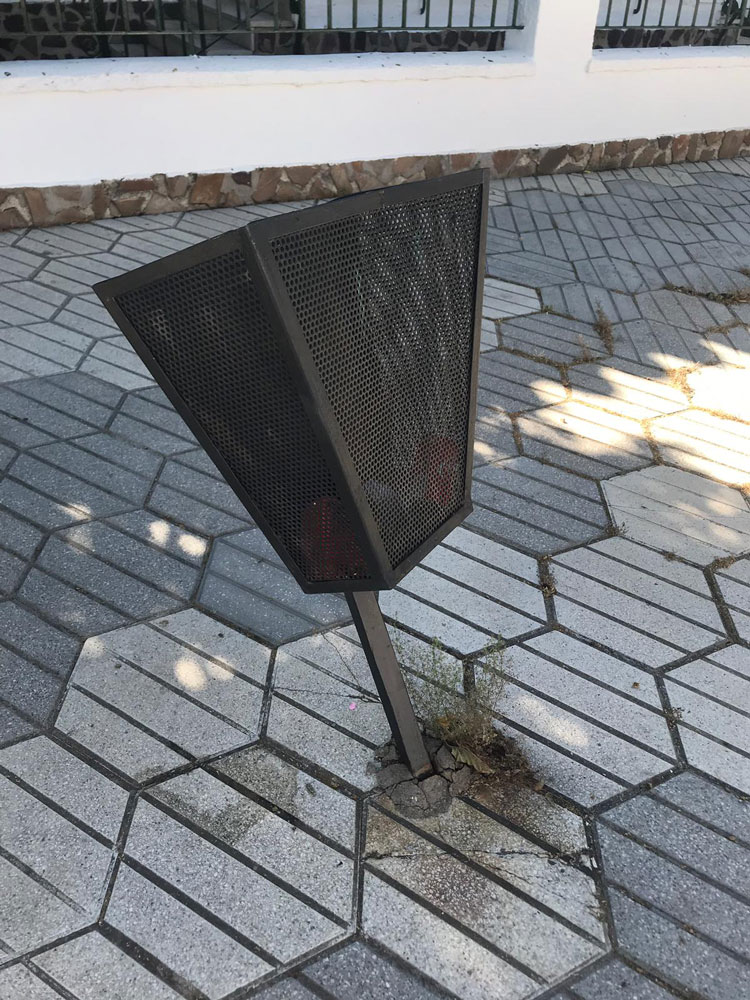 Han aparecido pintadas en bancos de la plaza de los Condes de Valdeparaíso, papeleras con daños significativos en el paseo de la Plaza de Toros y hasta han arrancado un trozo del césped artificial del parque de la ermita de San Pedro