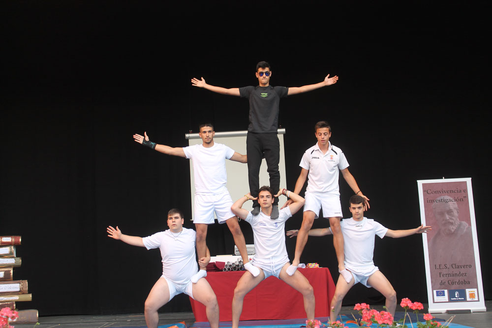 La gala fue amenizada musicalmente por tres alumnos del centro que interpretaron pequeñas piezas en distintos momentos del acto. Alumnos de 4º y 1º Bachillerato realizaron un espectacular número de acrosport que arrancó fuertes aplausos del público que llenó el patio de butacas.