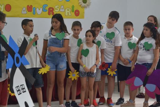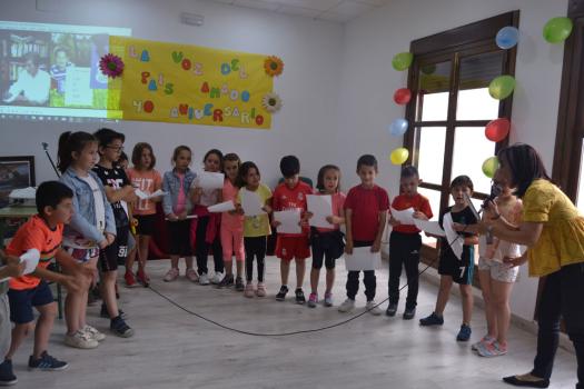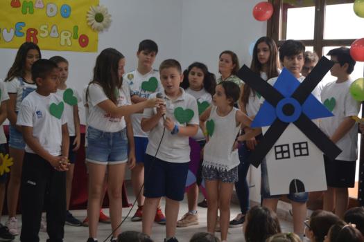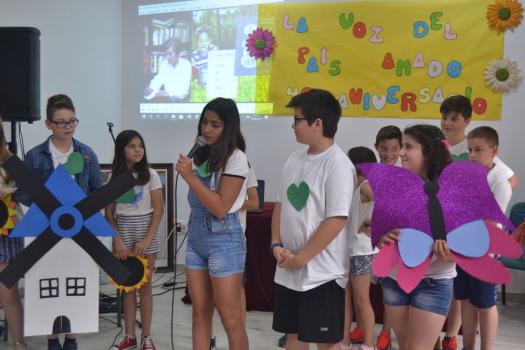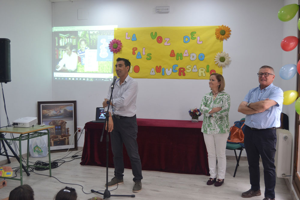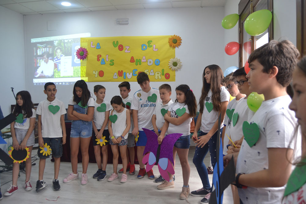 Los pequeños de último curso de Infantil y de 1º Primaria del colegio Paseo Viejo de la Florida, una clase de 4ª de Primaria del Diego de Almagro y una clase de 5ª de Primaria de colegio Miguel de Cervantes han han puesto voz a los personajes de Manolita como a su gatito, su mariposa ciega, su verde pollito, su gallo muy gallo, pero también a sus tejas, a una chimenea, a la primavera…No ha faltado su oración al maestro con el que se ha cerrado este sencillo homenaje en el que los niños también le enviaron un enorme abrazo y muchos besos, “nos gustaría que siguiera escribiendo de día de noche y a todas horas y que nunca se cansase de escribir para que todos podamos sentir lo que ella siente. “Muchas gracias por hacernos vivir tus sueños” gritaron los chavales del Diego de Almagro en nombre todos sus compañeros y de todos los niños y los que han sido niños.