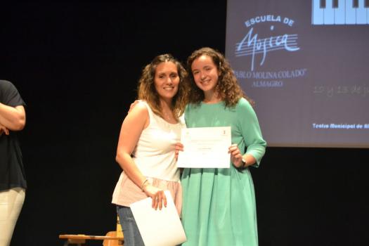 La Escuela Municipal de Música “Pablo Molina Colado” ha cerrado el curso escolar con la entrega de certificados a los alumnos que han finalizado su ciclo formativo. Tras seis años de especialidad instrumental, Nieves, Javier, Susana, Ignacio, Irene, Andrea, Olga y Alejandra han recibido su compensación: diploma y recital individual de cada uno de ellos. Las especialidades fueron oboe, piano, clarinete, flauta y trompeta.