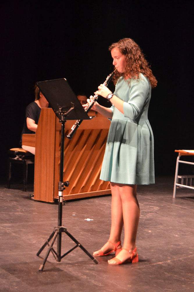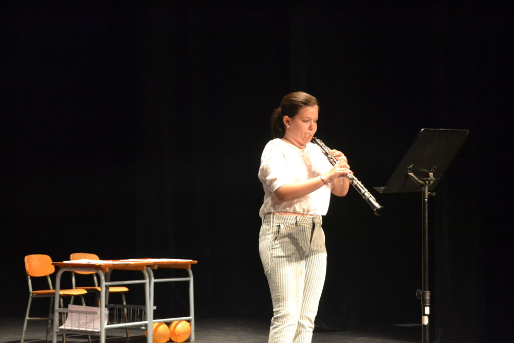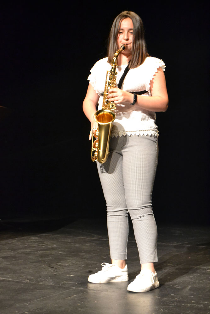 También salió al escenario Lorena de 5º curso de saxofón que se presenta a la prueba de acceso de enseñanzas profesionales y los alumnos de Música y Movimiento que después de cinco años dejan esta especialidad de iniciación a la música para dedicarse a un instrumento. Hubo nervios, a pesar de que el público eran sus padres, familiares, amigos y profesores, pero el resultado fue muy positivo.